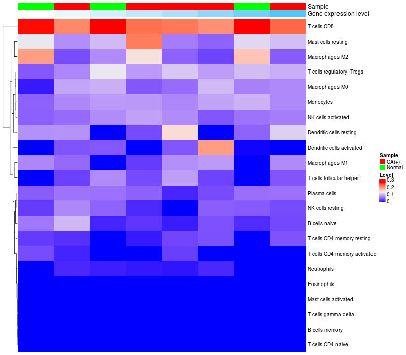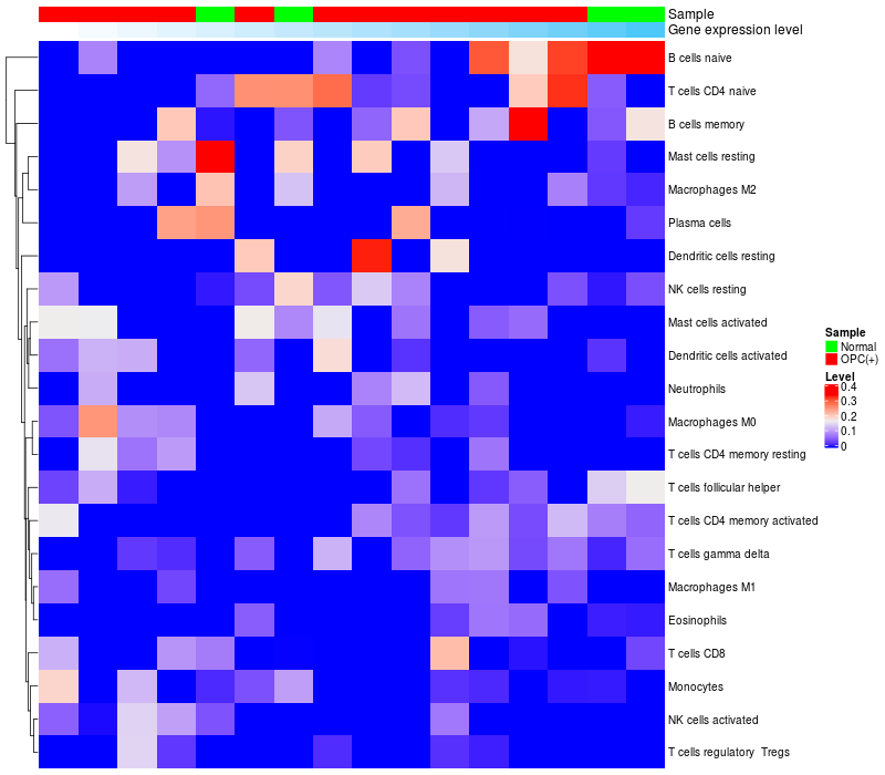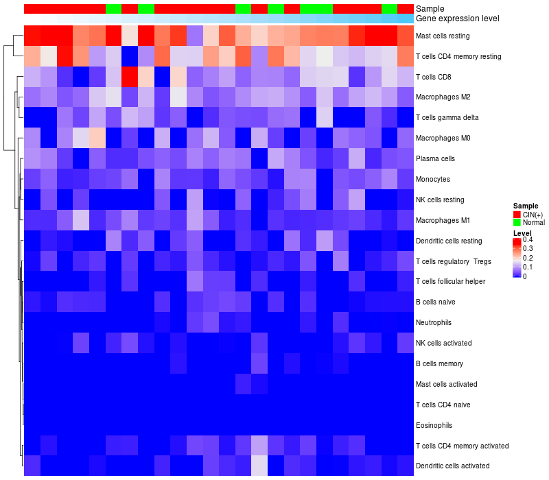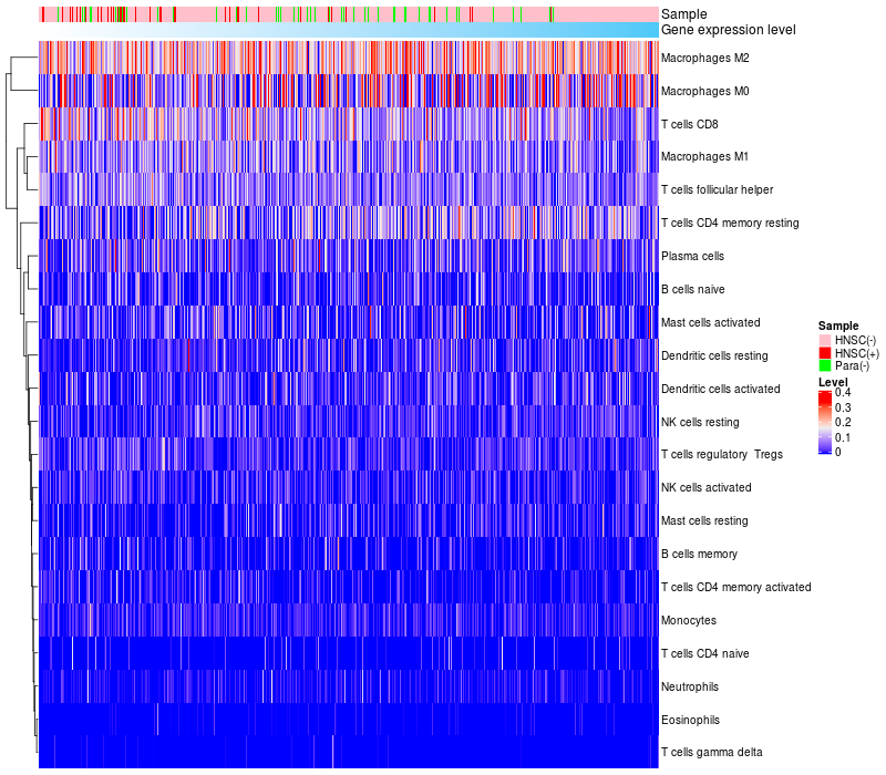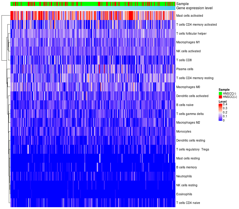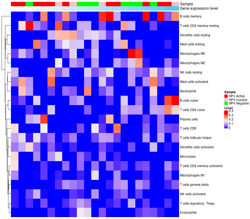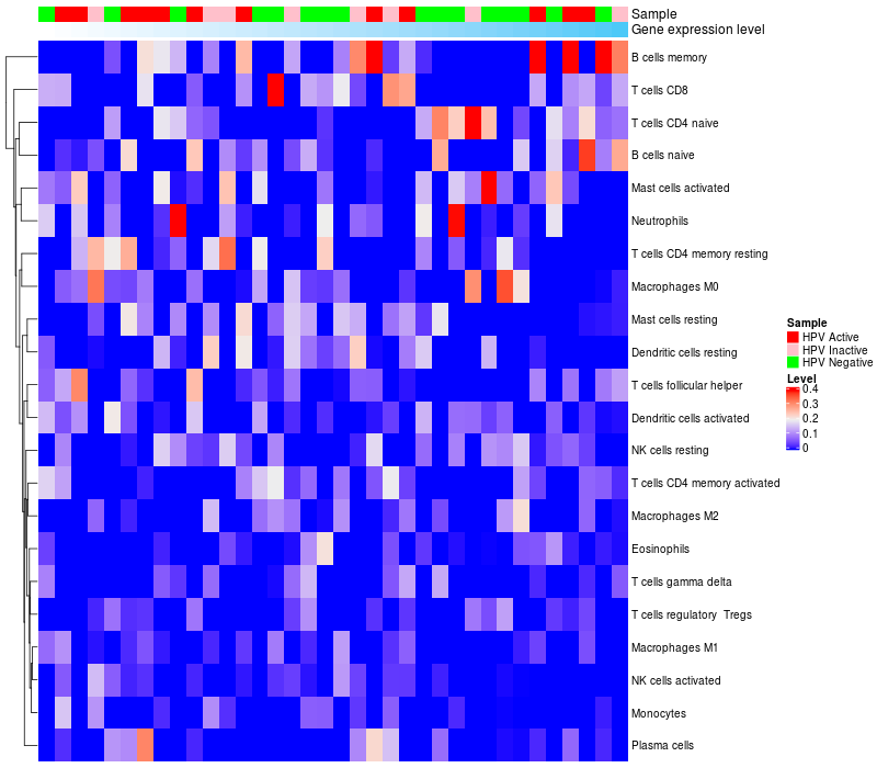 Lollipop of GABRA3 expression and immune infiltrating cell level correlation result in HPV+ samples