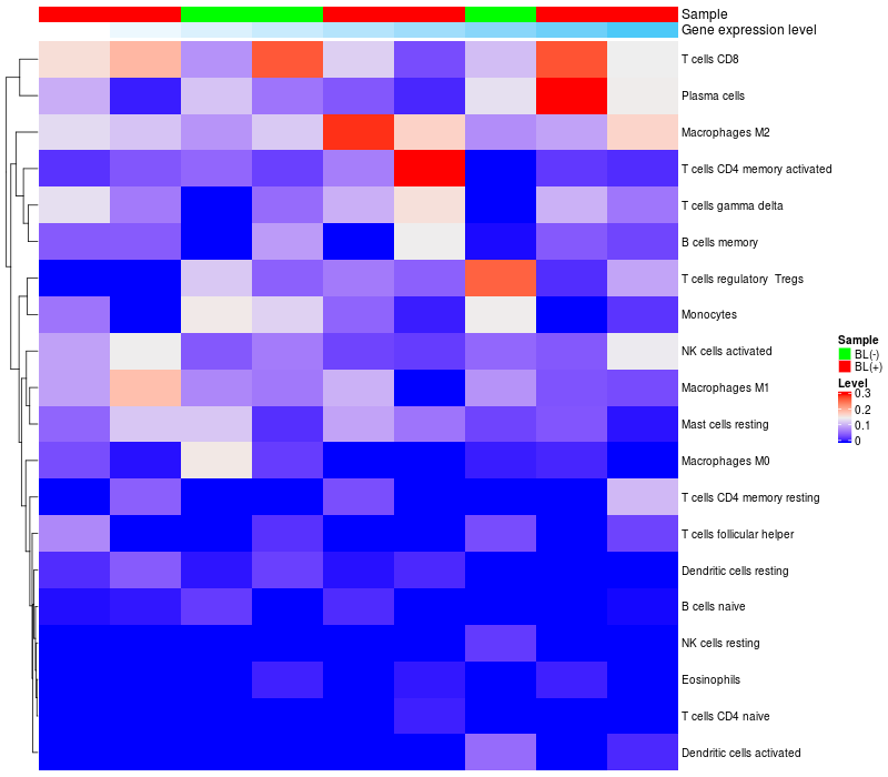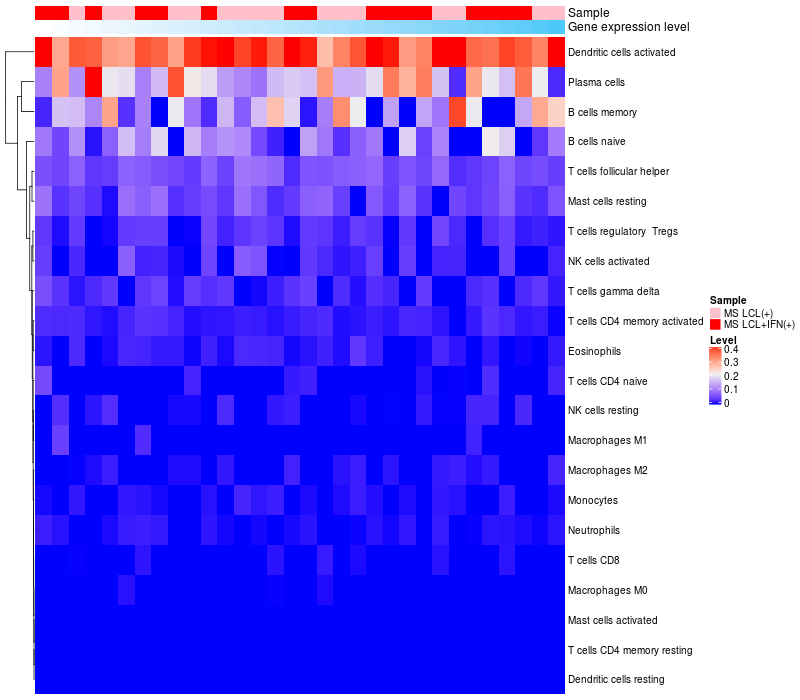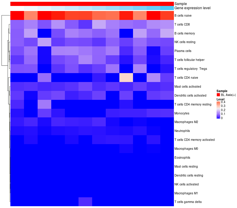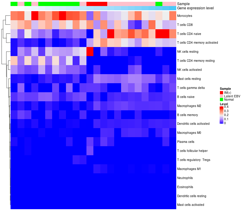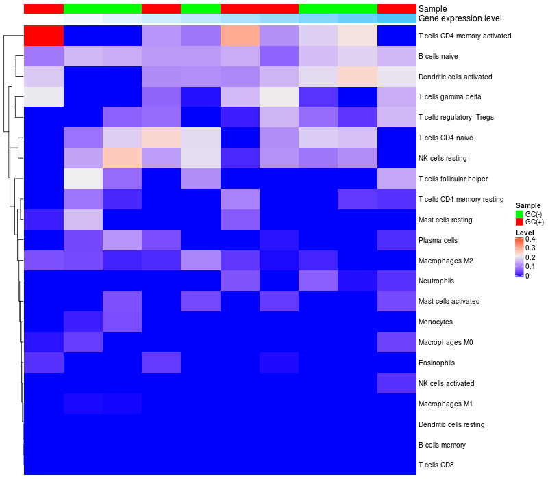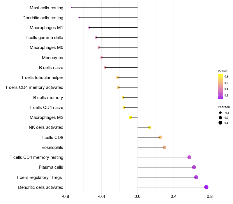Lollipop of GAD2 expression and immune infiltrating cell level correlation result in EBV+ samples