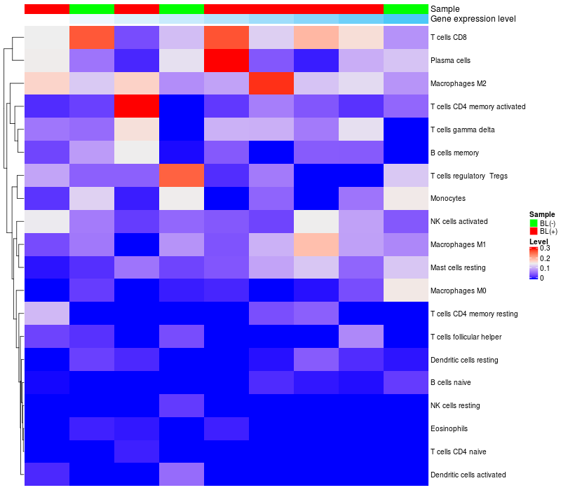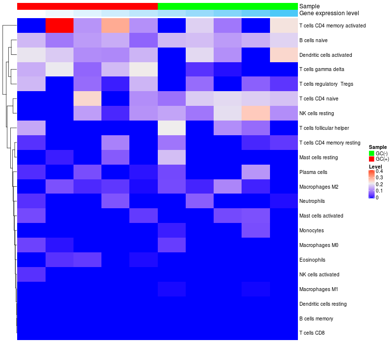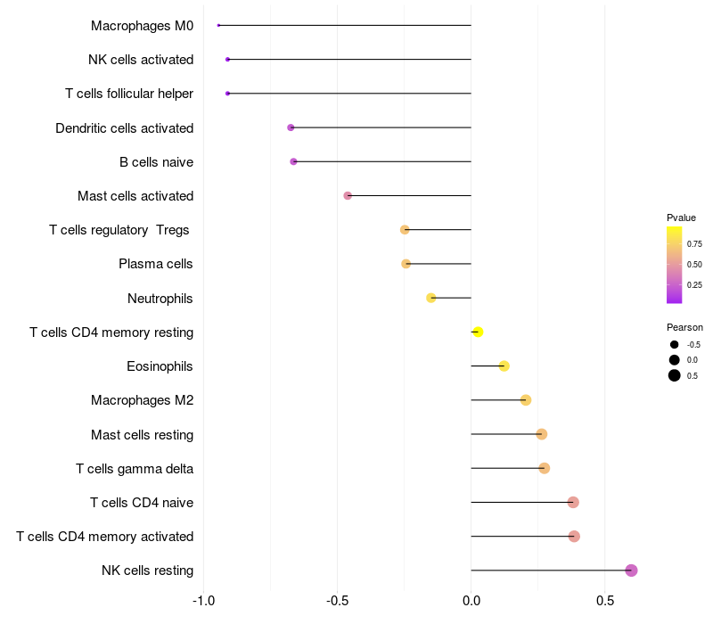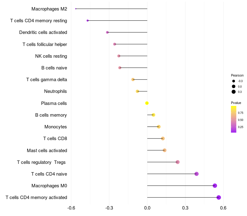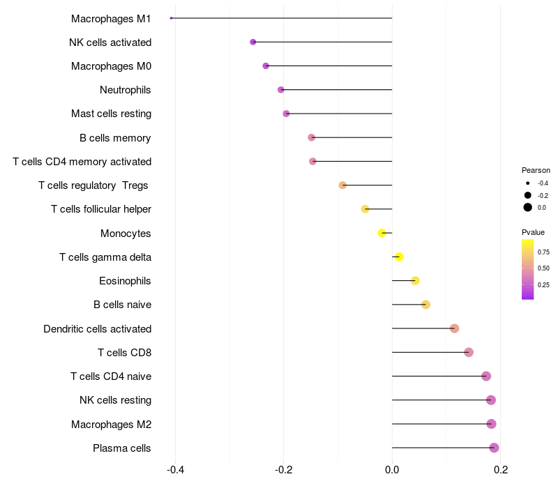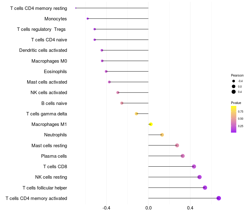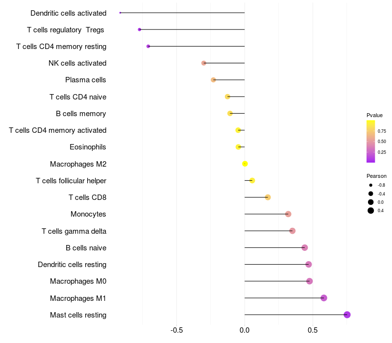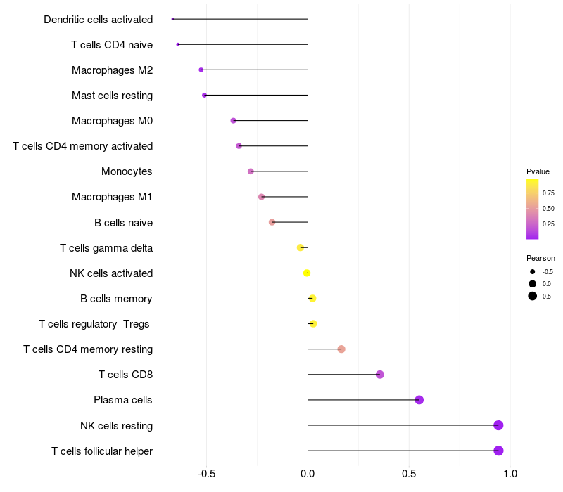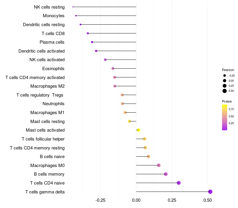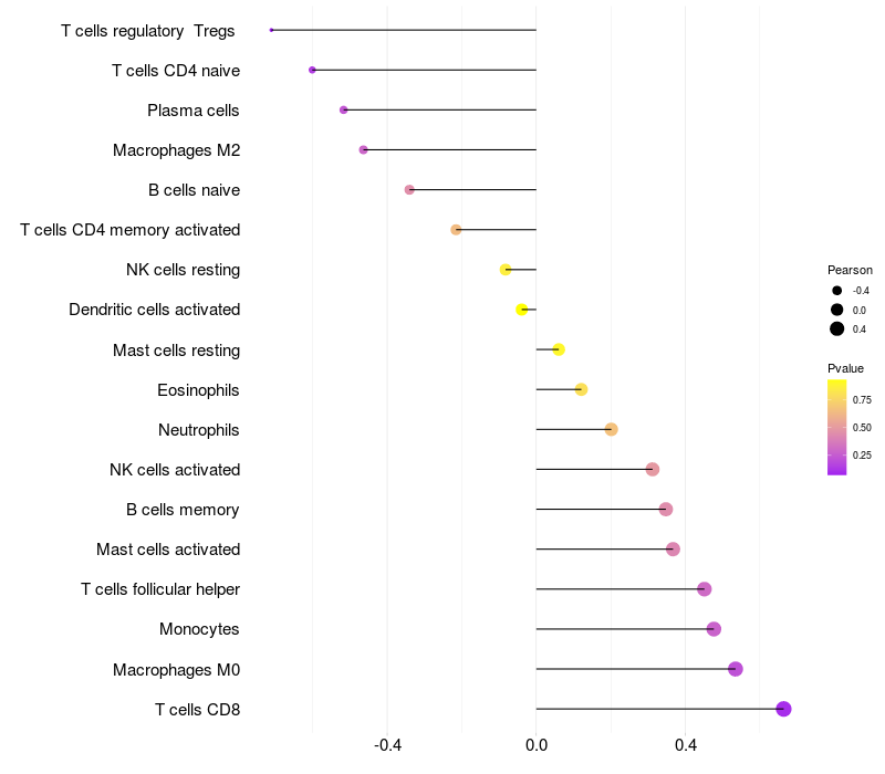 Lollipop of GALM expression and immune infiltrating cell level correlation result in EBV+ samples