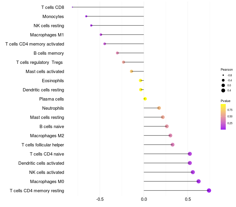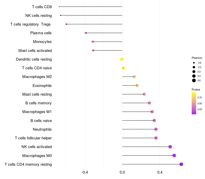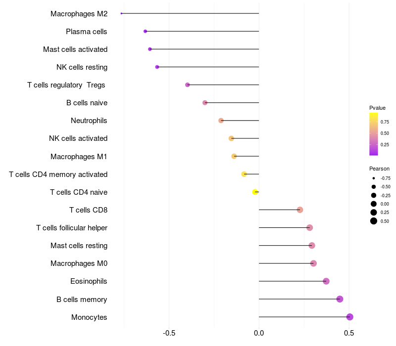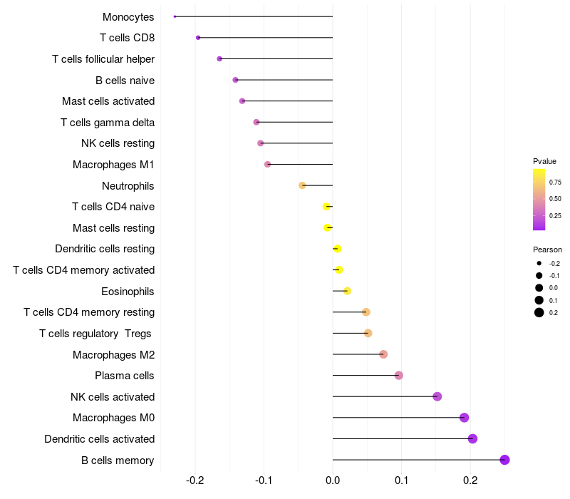 Lollipop of GALNT10 expression and immune infiltrating cell level correlation result in HBV+ Liver cirrhosis samples