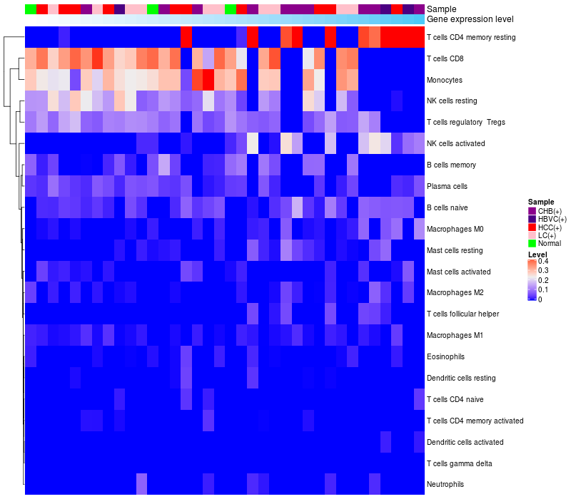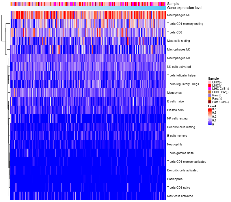 Liver hepatocellular carcinoma HCV (HBV+)(86), Liver hepatocellular carcinoma HCV (HBV-)(19), Liver hepatocellular carcinoma (HBV+)(209), Liver hepatocellular carcinoma (HBV+)(60), Paracancerous HCV (HBV+)(4), Paracancerous (HBV-)(28), Paracancerous (HBV+)(18) |