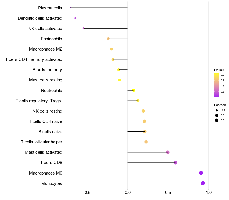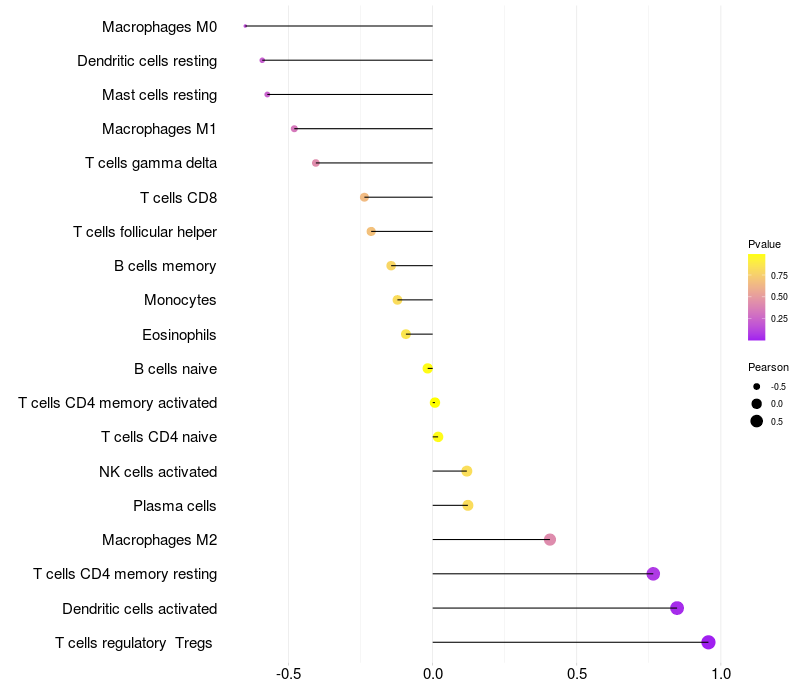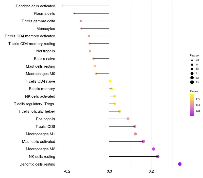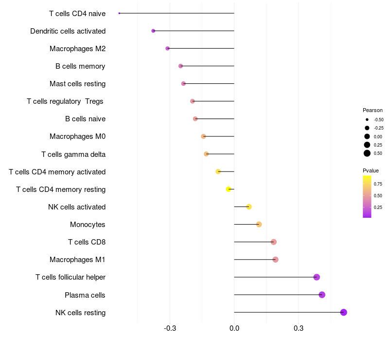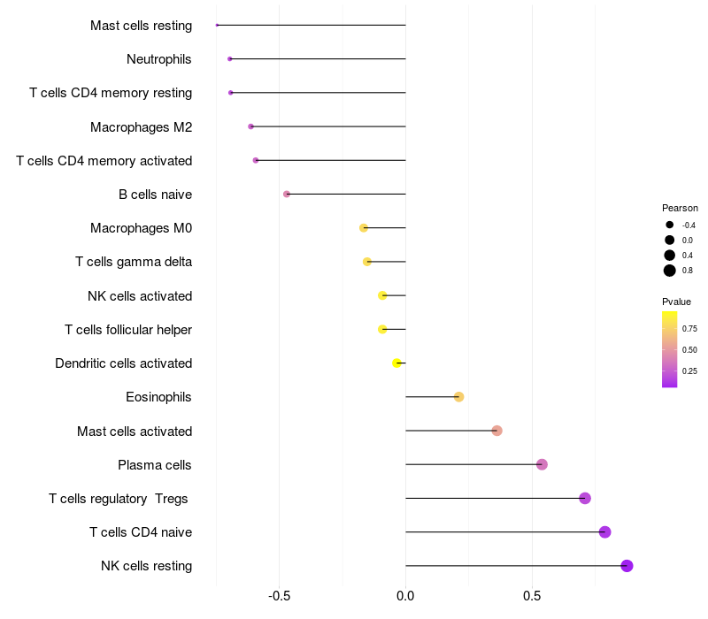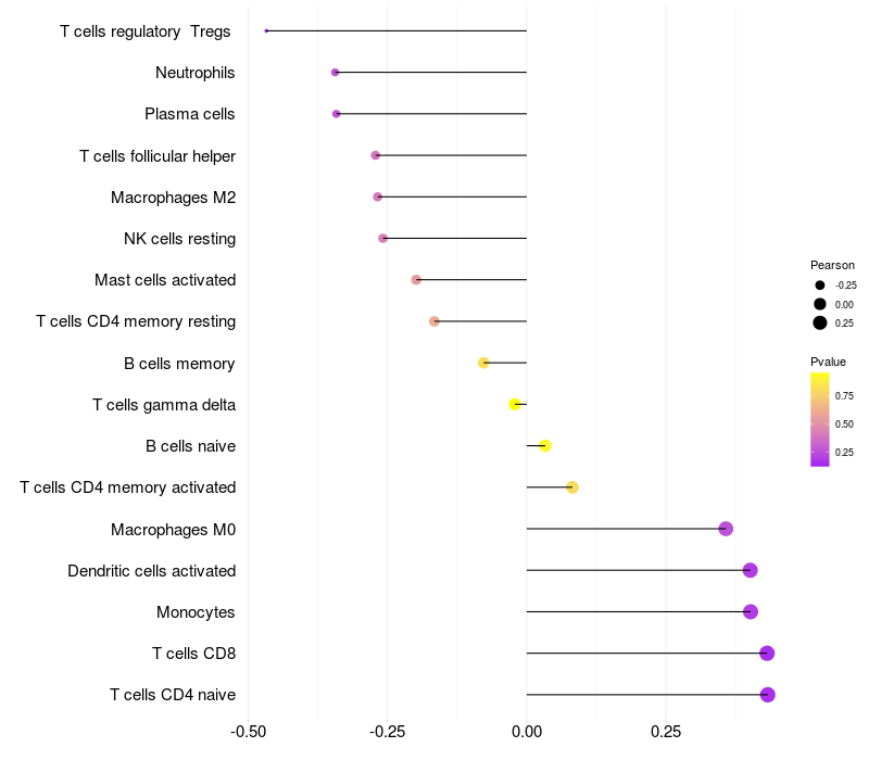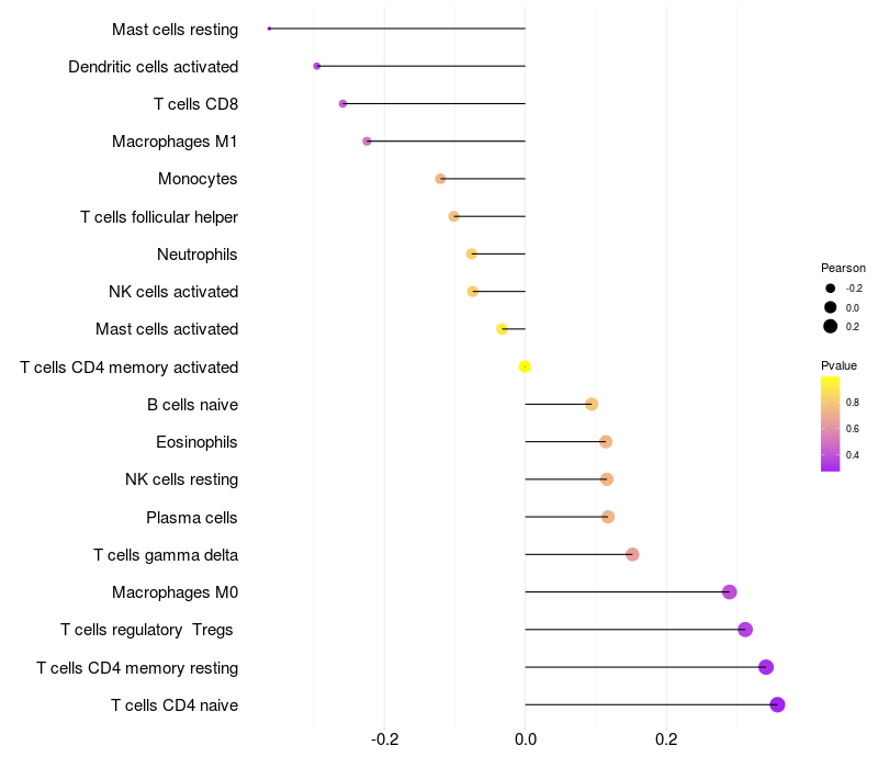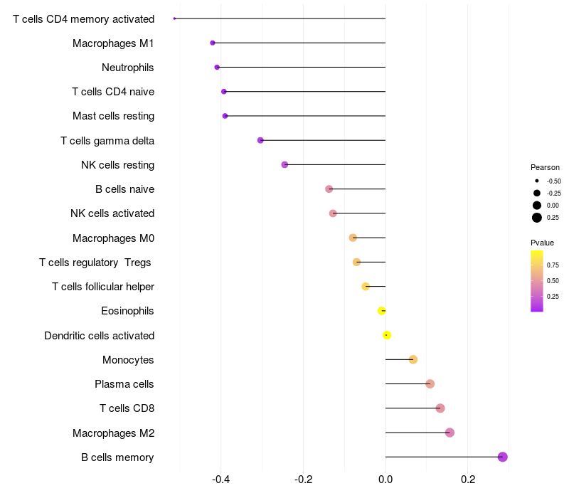 Lollipop of GALNT13 expression and immune infiltrating cell level correlation result in EBV+ samples