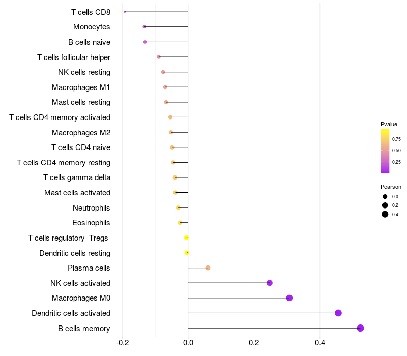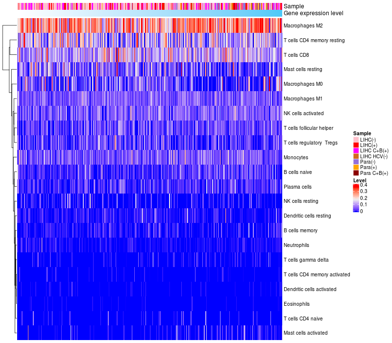 Relationship between gene expression and immune infiltrating cell level