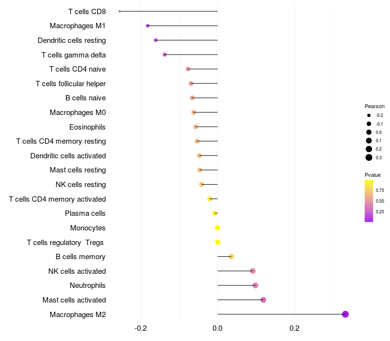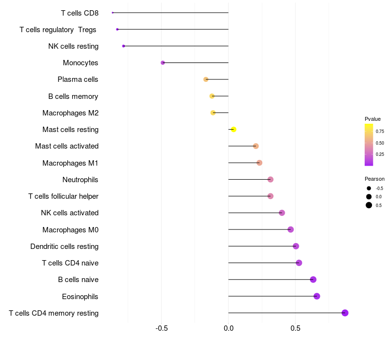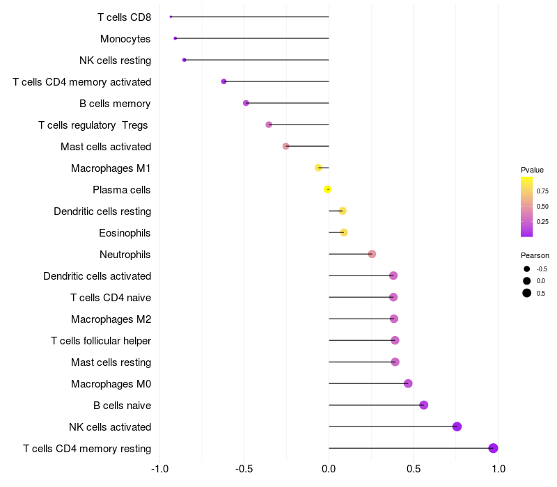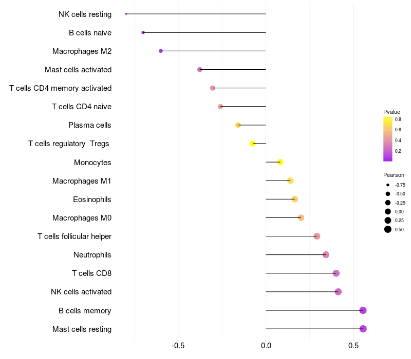 Lollipop of GALNT2 expression and immune infiltrating cell level correlation result in HBV+ Liver cirrhosis samples