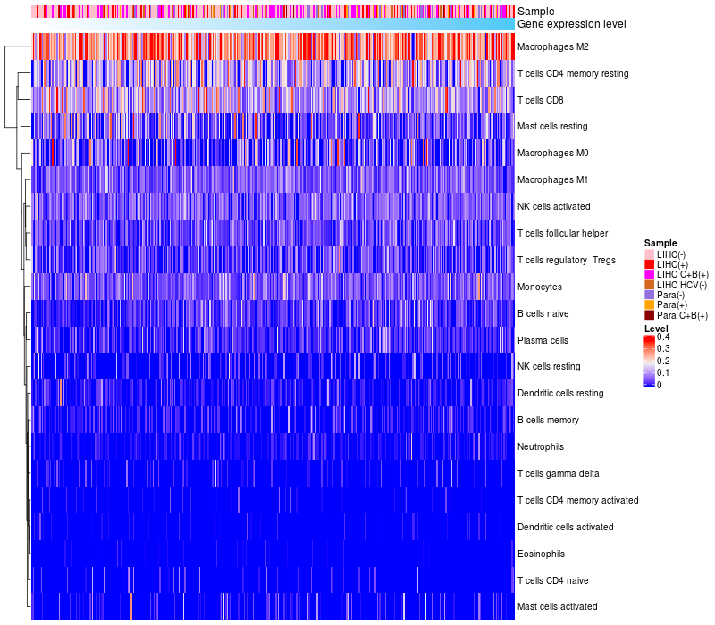 Liver hepatocellular carcinoma HCV (HBV+)(86), Liver hepatocellular carcinoma HCV (HBV-)(19), Liver hepatocellular carcinoma (HBV+)(209), Liver hepatocellular carcinoma (HBV+)(60), Paracancerous HCV (HBV+)(4), Paracancerous (HBV-)(28), Paracancerous (HBV+)(18) |