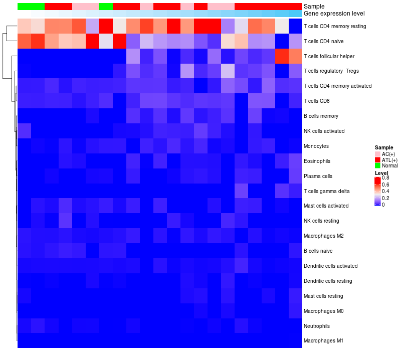 Normal (3), Asymptomatic carriers (HTLV1+)(6), Adult T-cell Leukemia-lymphoma (HTLV1+)(12) |
