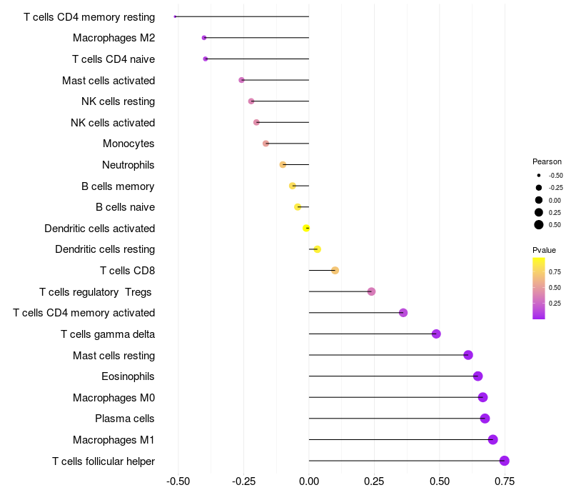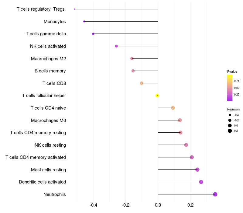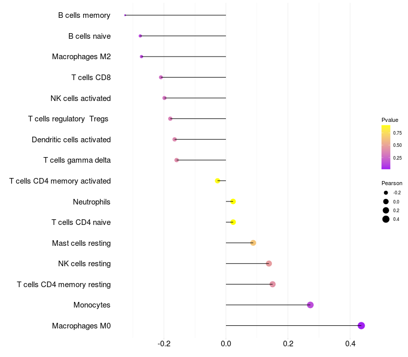 Lollipop of GALNT3 expression and immune infiltrating cell level correlation result in HTLV1+ samples
