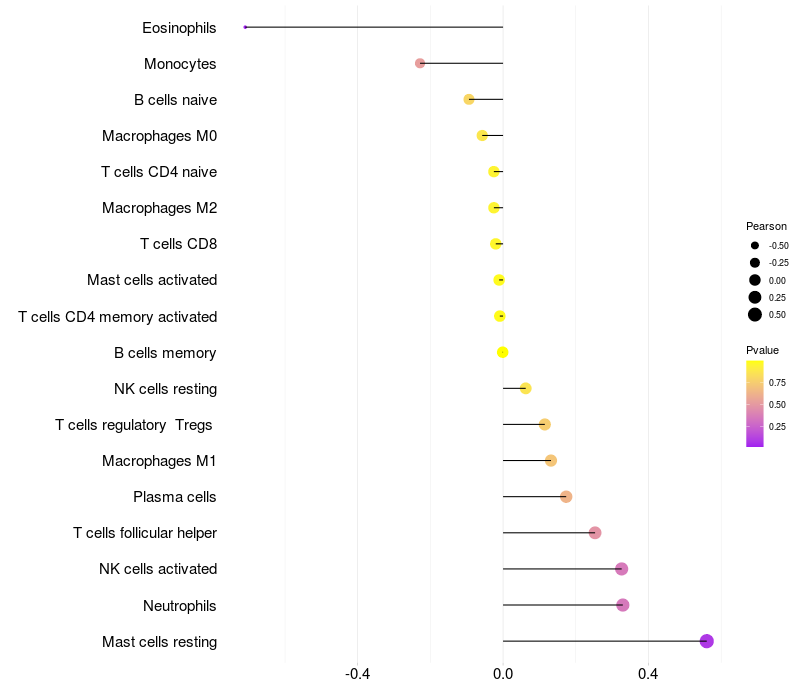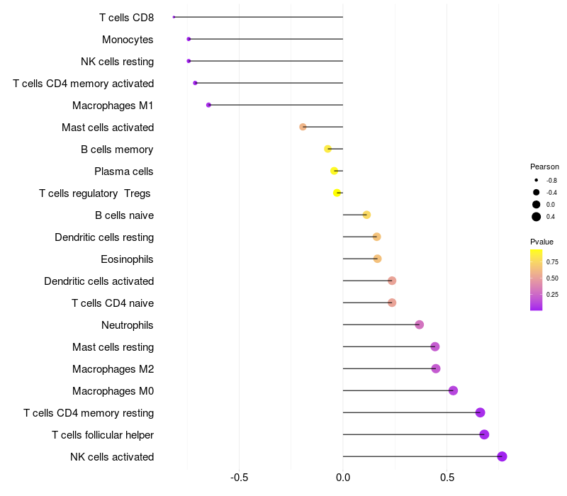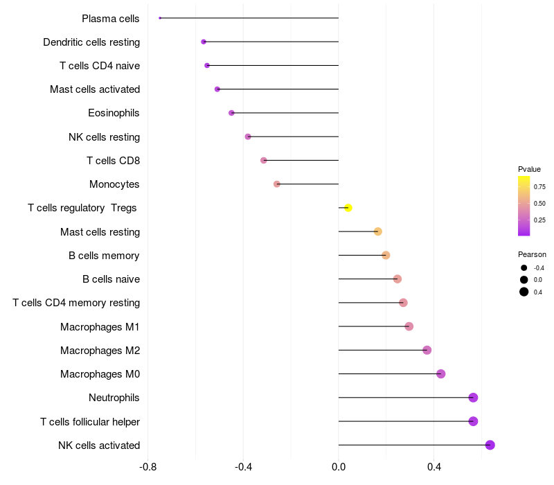 Lollipop of GALNT7 expression and immune infiltrating cell level correlation result in HBV+ Liver cirrhosis samples