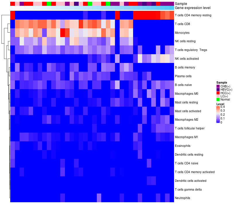 Liver hepatocellular carcinoma HCV (HBV+)(86), Liver hepatocellular carcinoma HCV (HBV-)(19), Liver hepatocellular carcinoma (HBV+)(209), Liver hepatocellular carcinoma (HBV+)(60), Paracancerous HCV (HBV+)(4), Paracancerous (HBV-)(28), Paracancerous (HBV+)(18) |