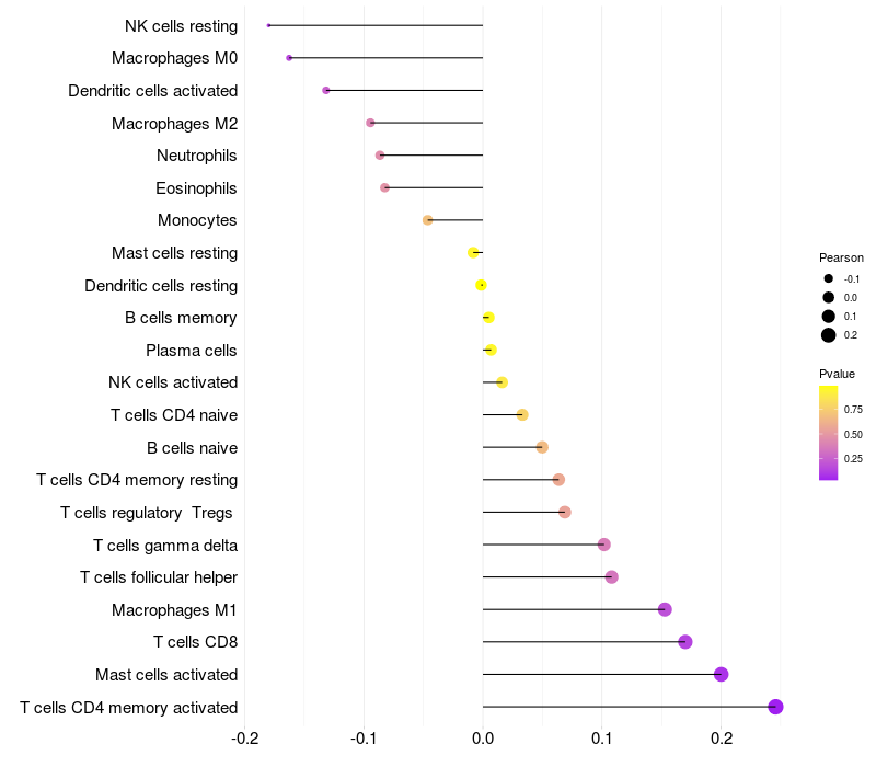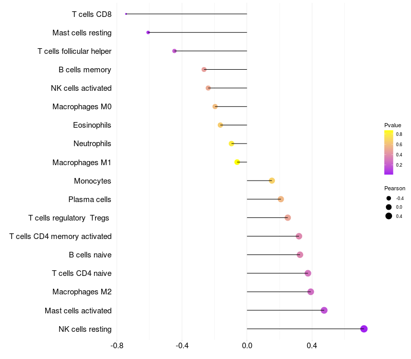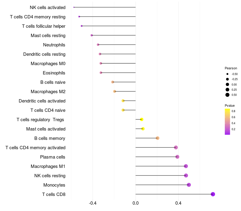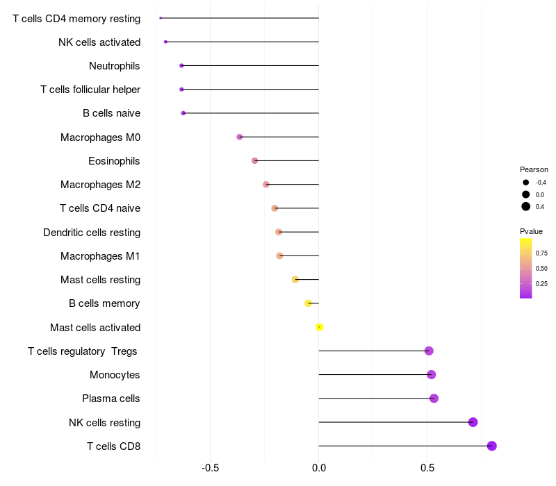 Lollipop of GALNT8 expression and immune infiltrating cell level correlation result in HBV+ Liver cirrhosis samples