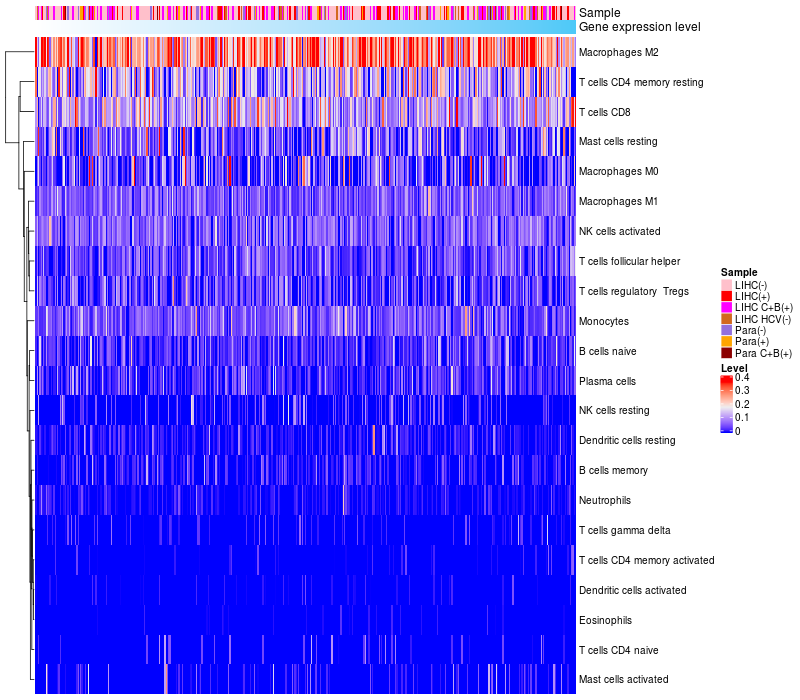 Liver hepatocellular carcinoma HCV (HBV+)(86), Liver hepatocellular carcinoma HCV (HBV-)(19), Liver hepatocellular carcinoma (HBV+)(209), Liver hepatocellular carcinoma (HBV+)(60), Paracancerous HCV (HBV+)(4), Paracancerous (HBV-)(28), Paracancerous (HBV+)(18) |