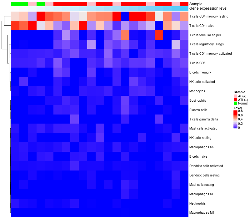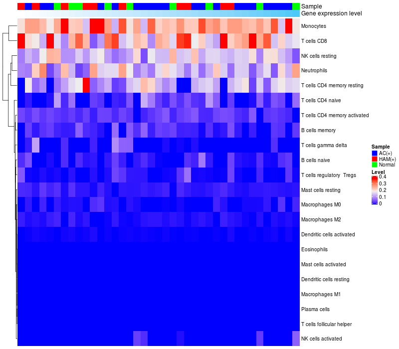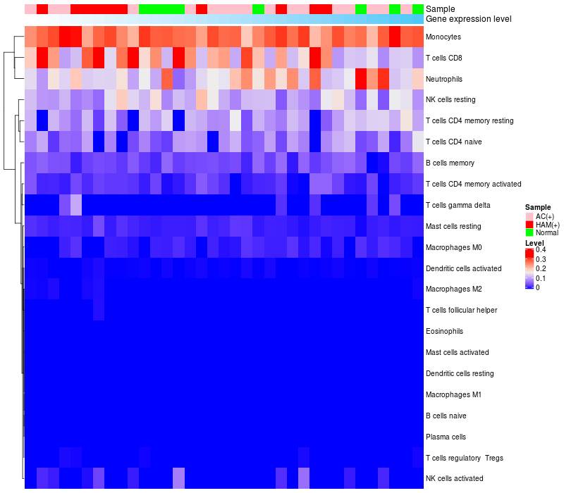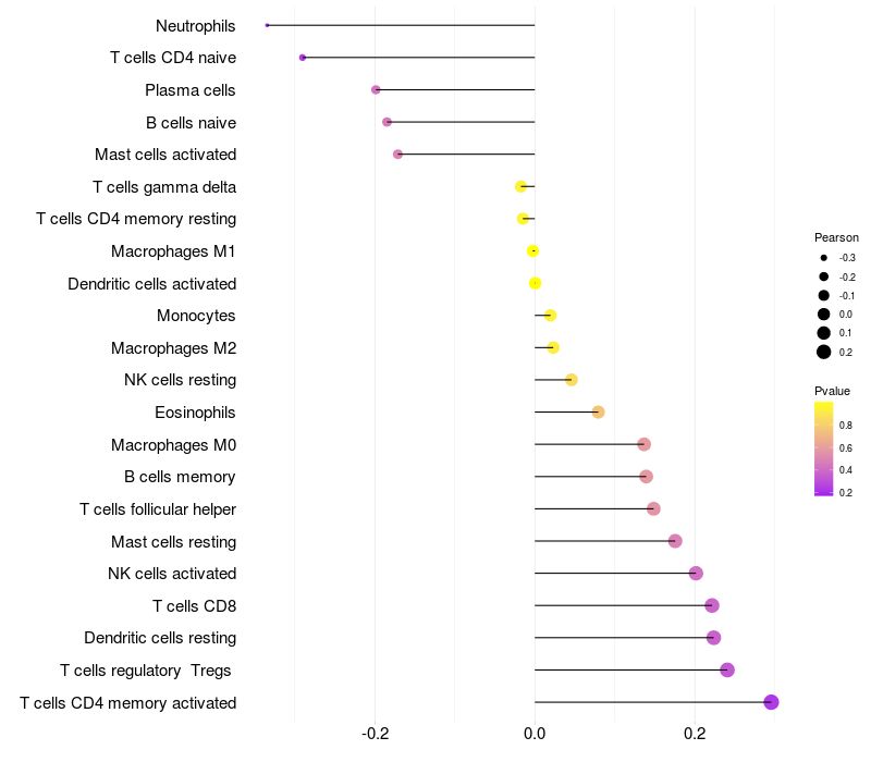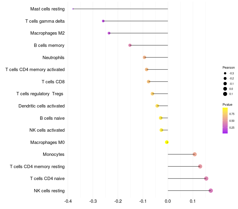 Relationship between gene expression and immune infiltrating cell level