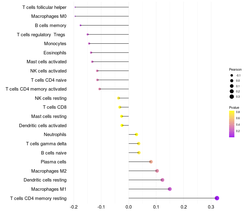 Relationship between gene expression and immune infiltrating cell level