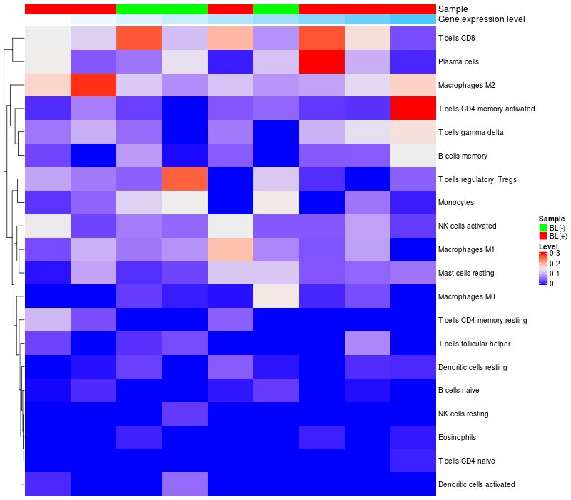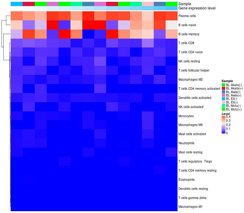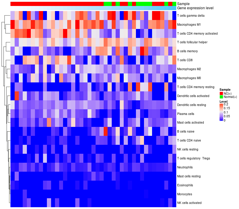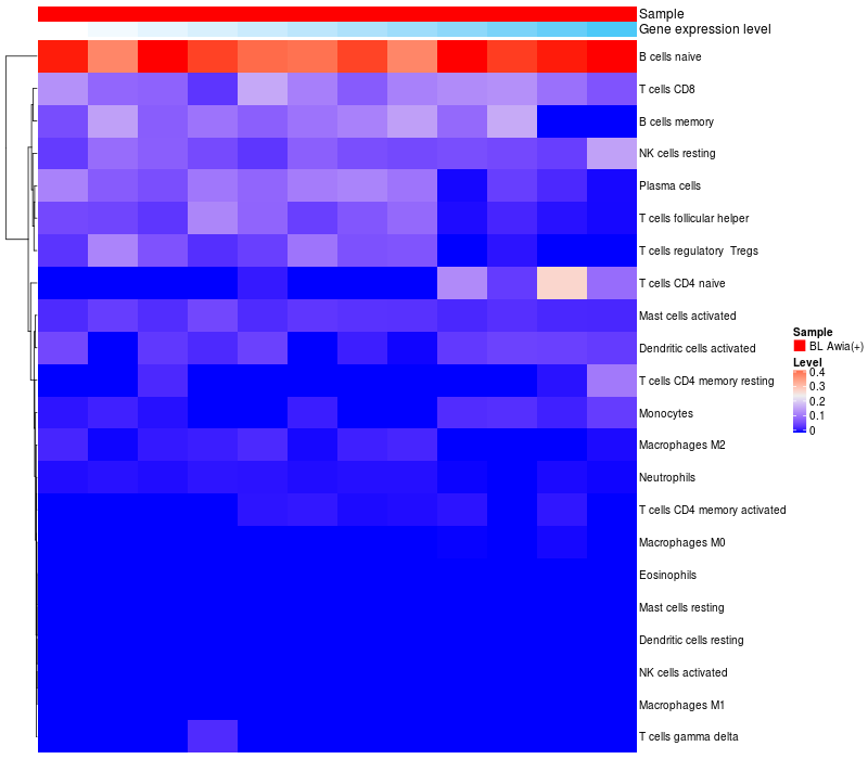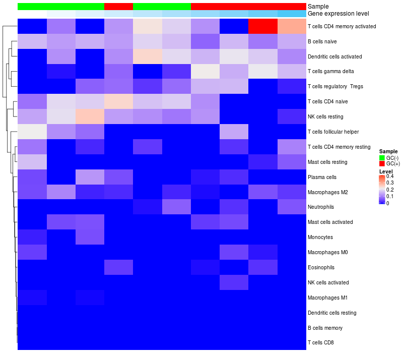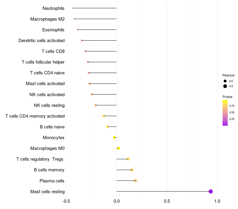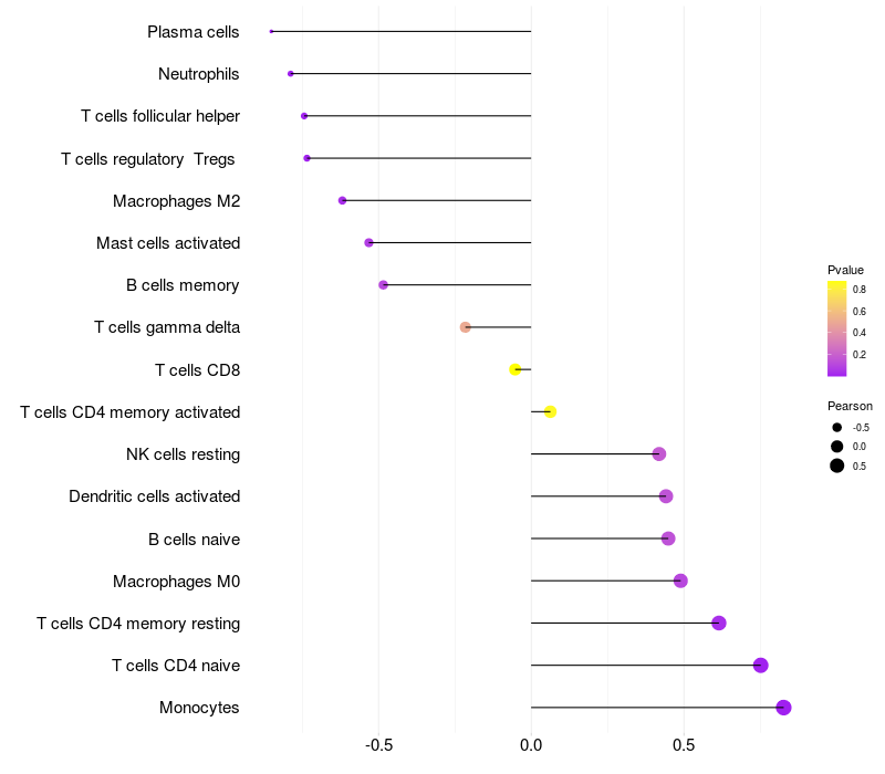 Lollipop of GAS7 expression and immune infiltrating cell level correlation result in EBV+ samples