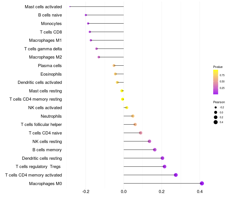 Relationship between gene expression and immune infiltrating cell level