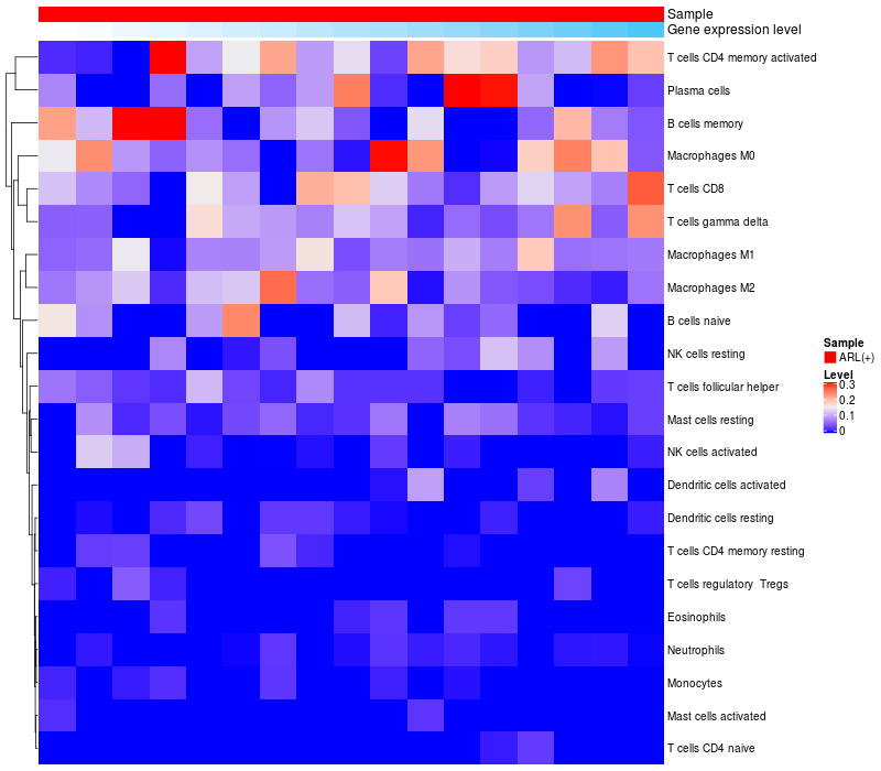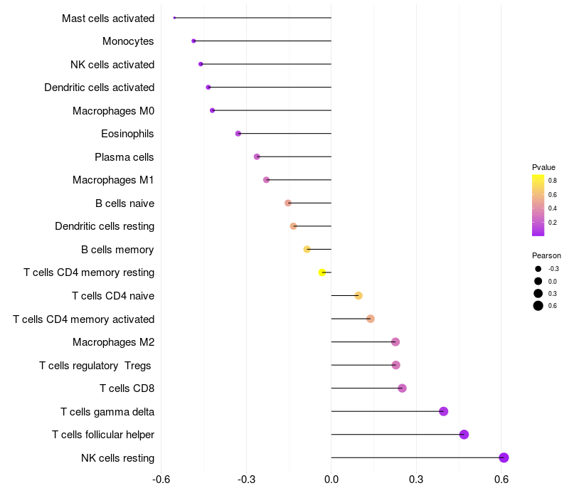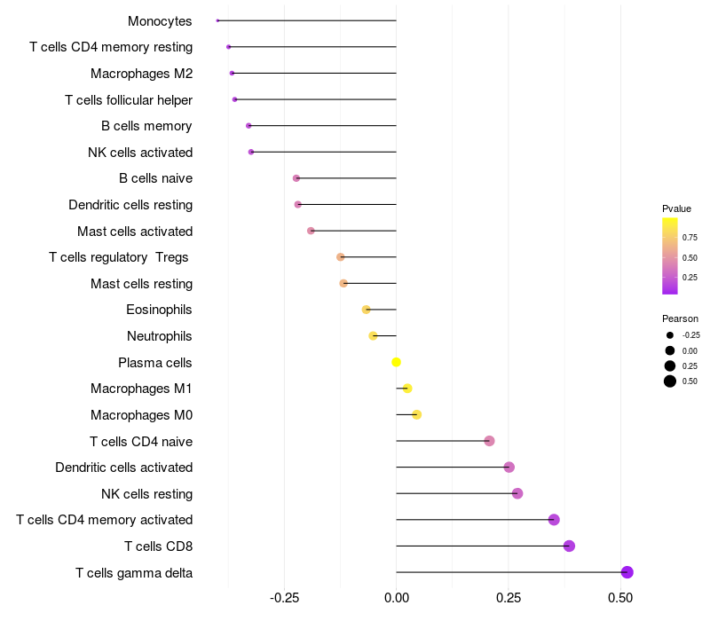 Relationship between gene expression and immune infiltrating cell level