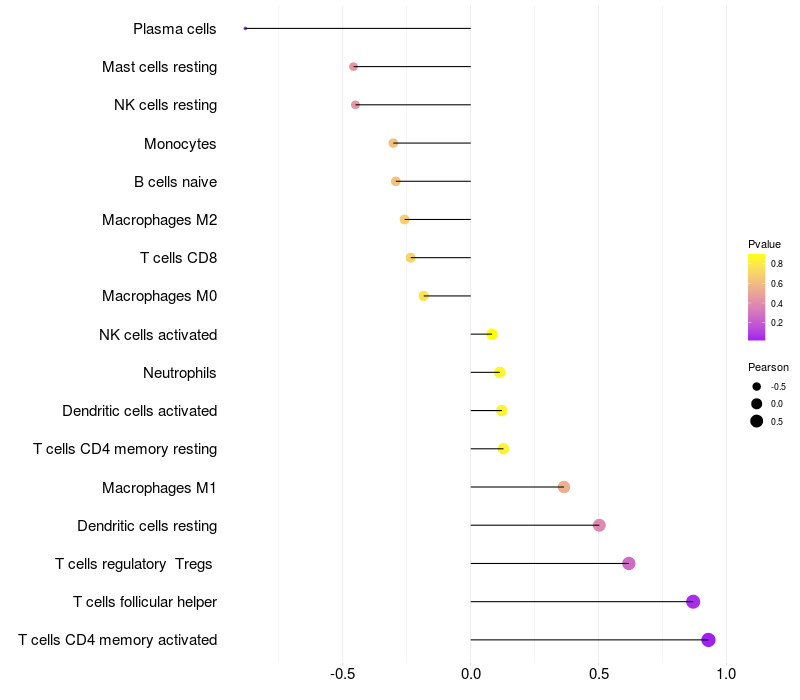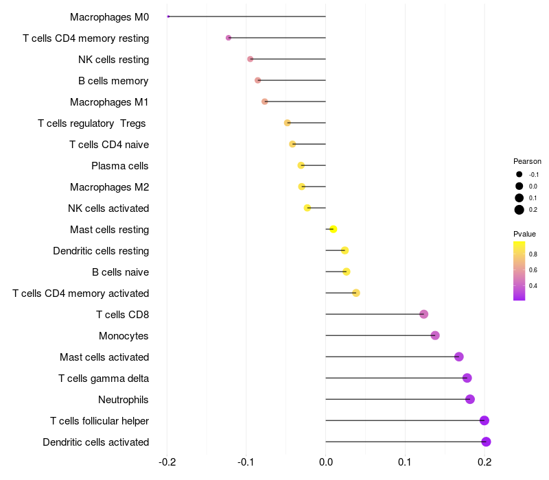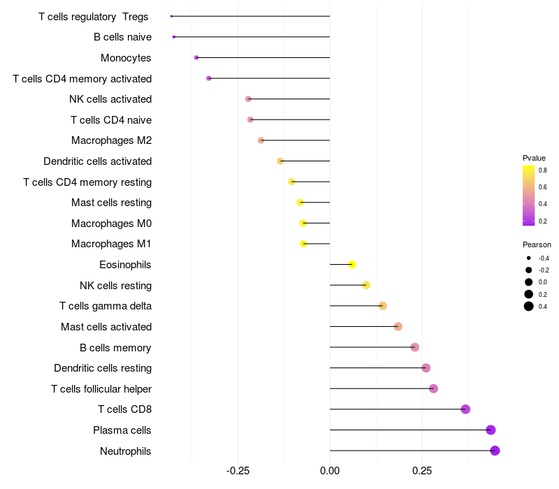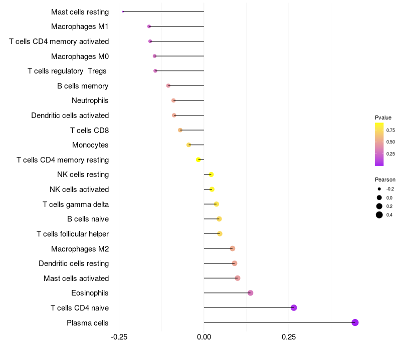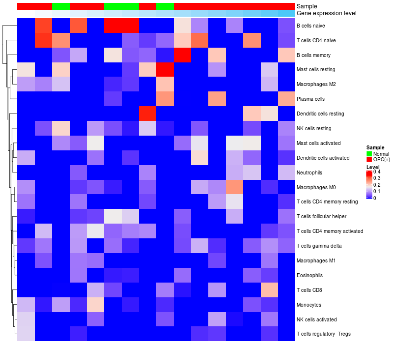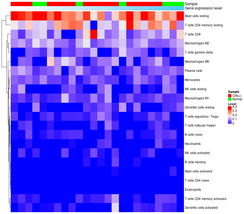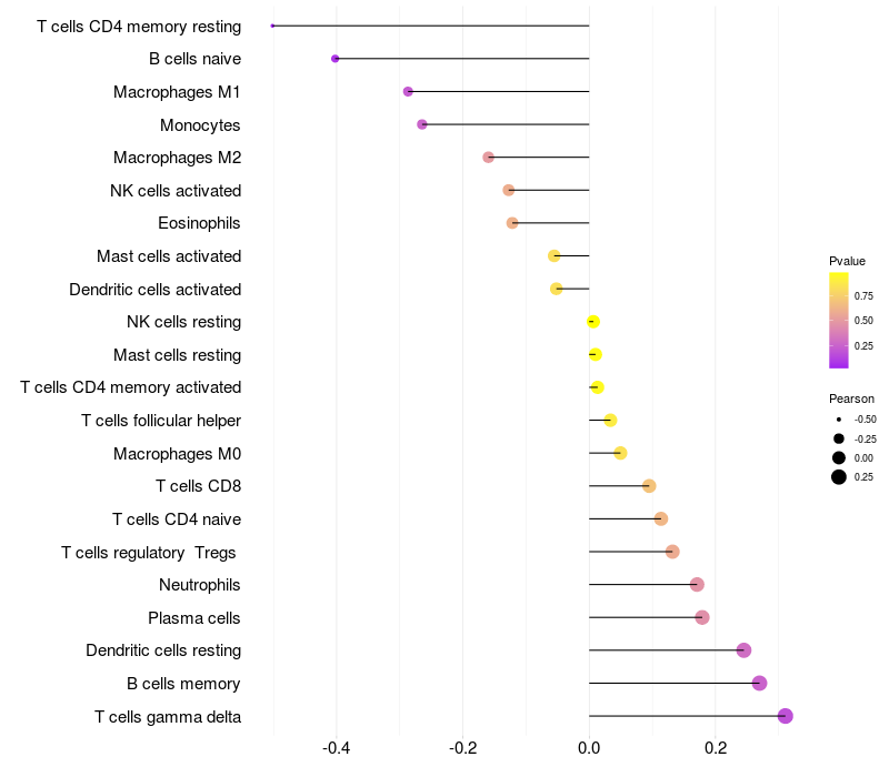 Relationship between gene expression and immune infiltrating cell level
