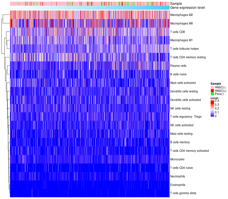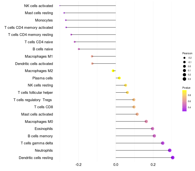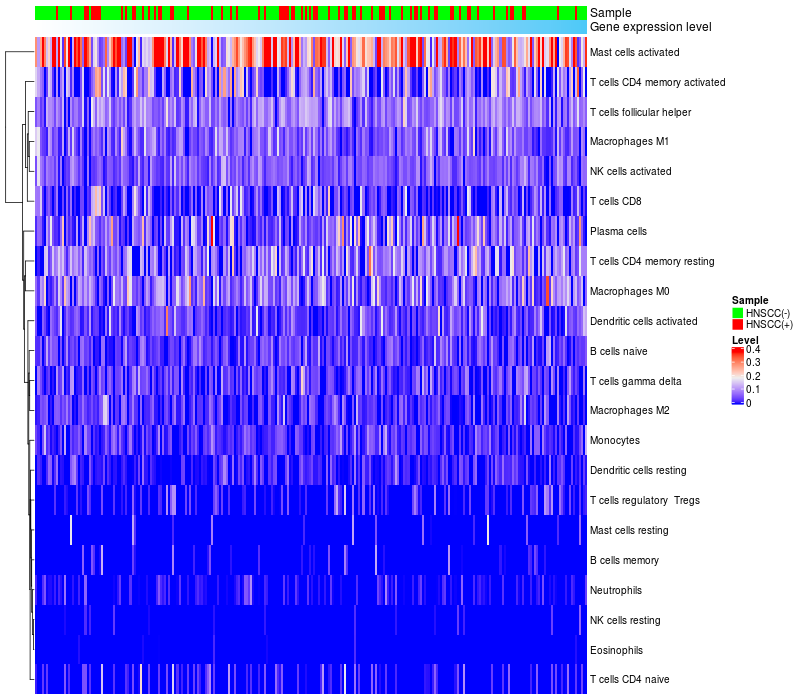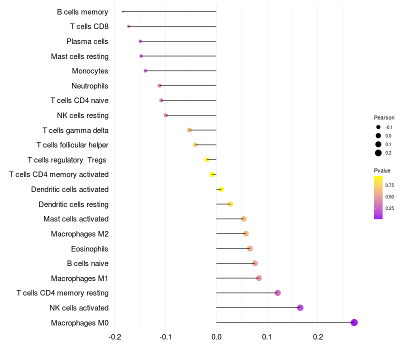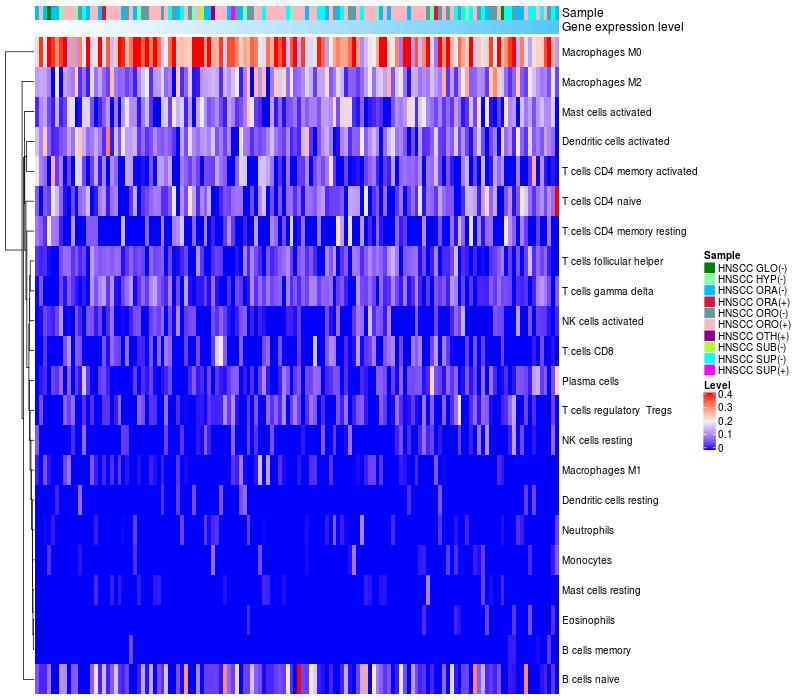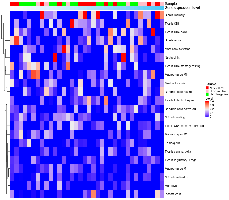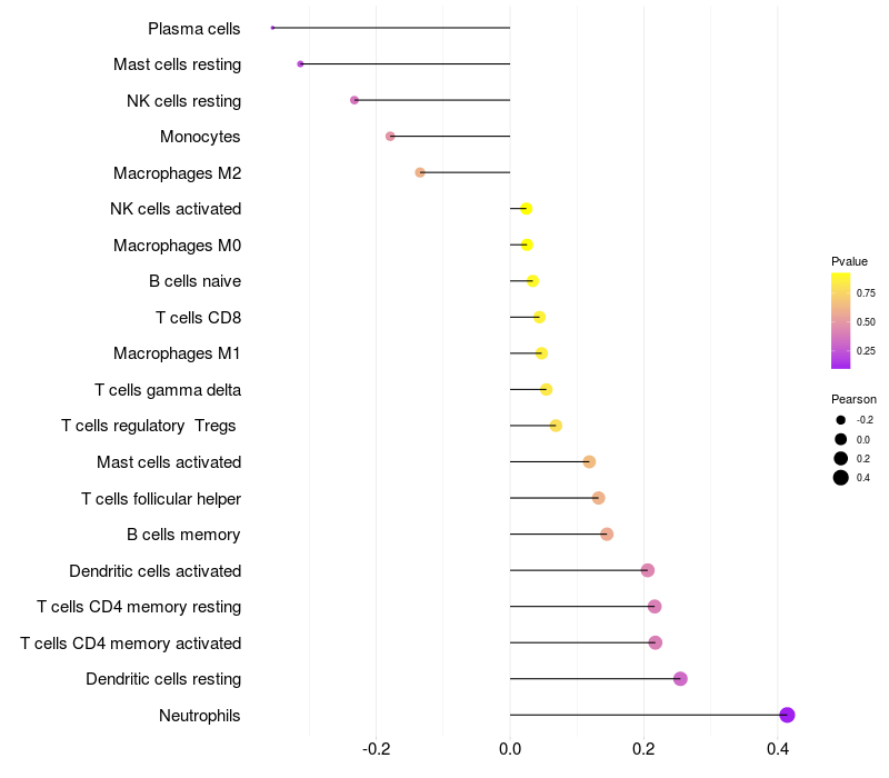 Relationship between gene expression and immune infiltrating cell level