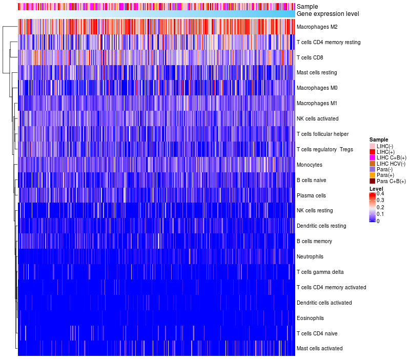 Relationship between gene expression and immune infiltrating cell level