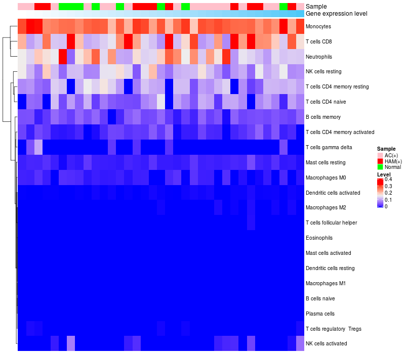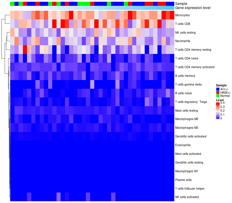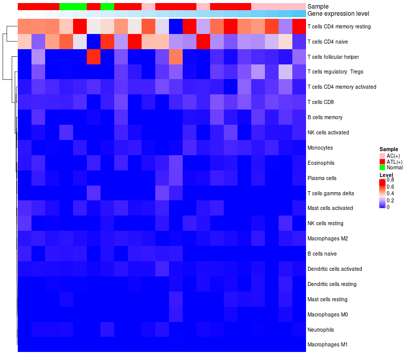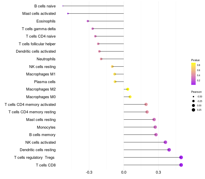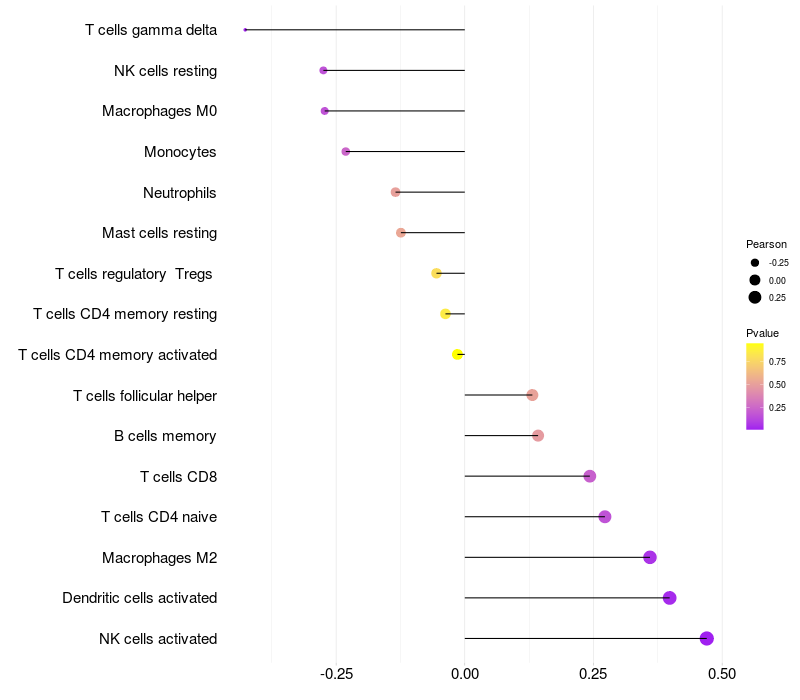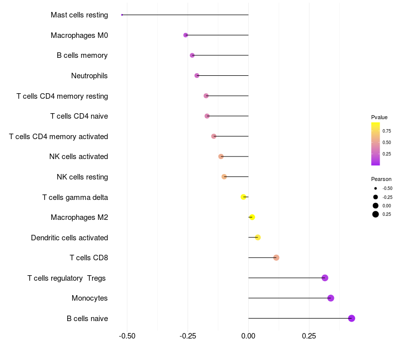 Lollipop of GCNT1 expression and immune infiltrating cell level correlation result in HTLV1+ samples