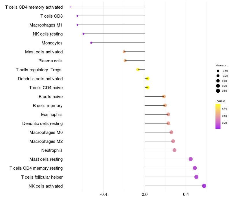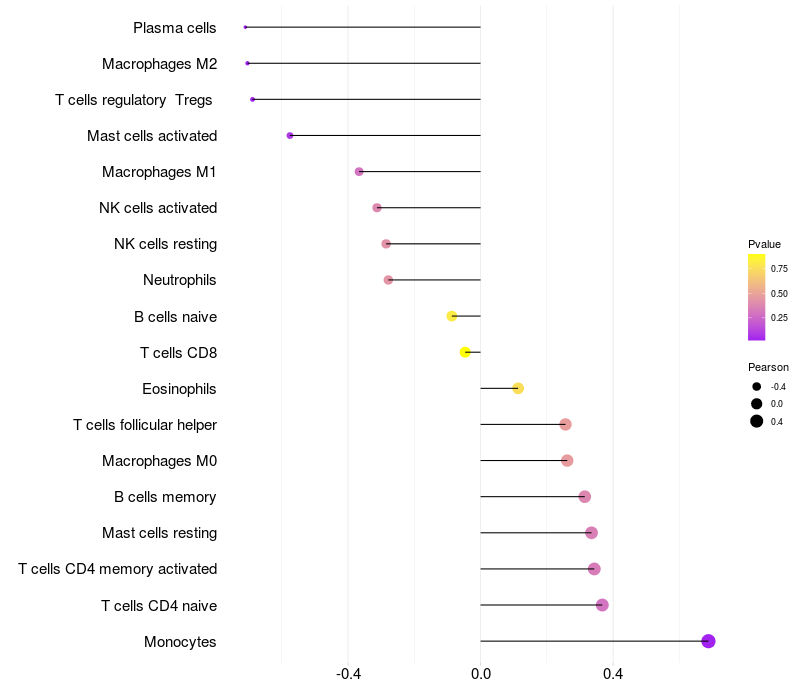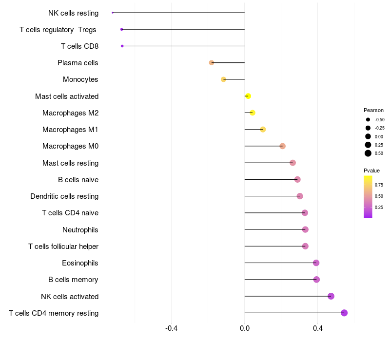 Lollipop of GDI2 expression and immune infiltrating cell level correlation result in HBV+ Liver cirrhosis samples