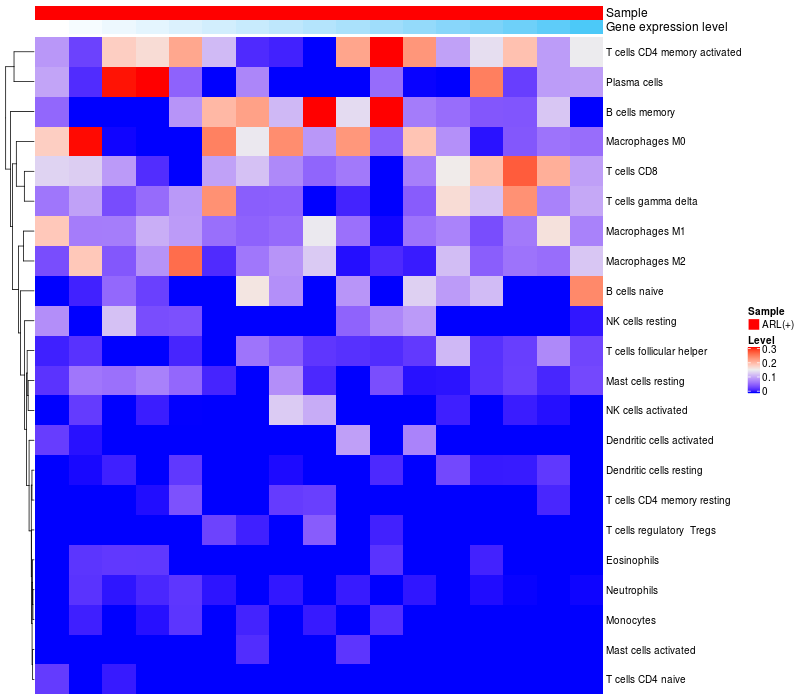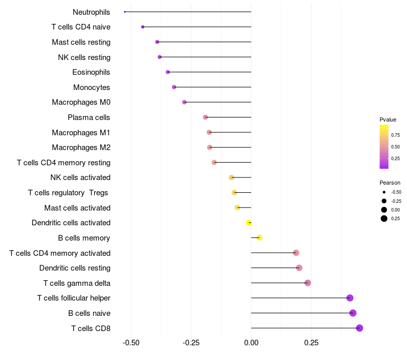 Relationship between gene expression and immune infiltrating cell level