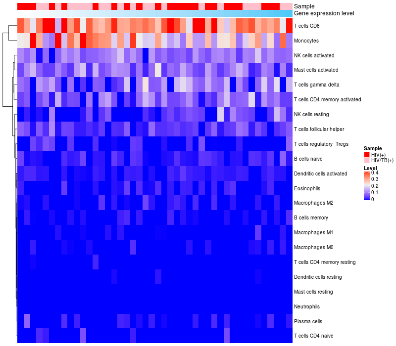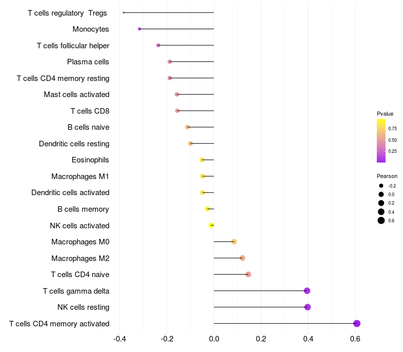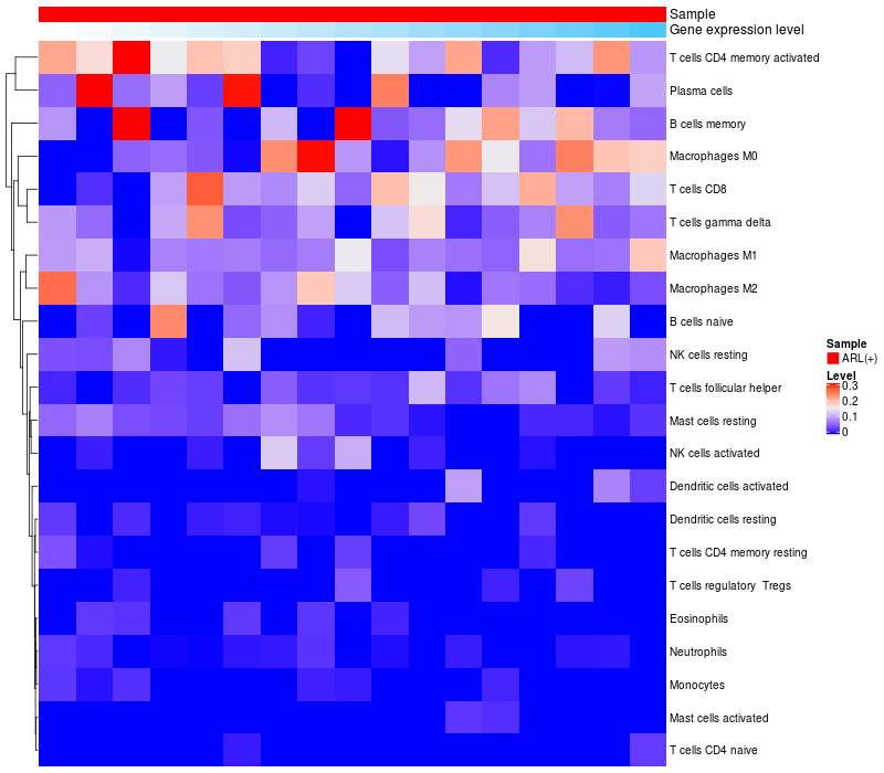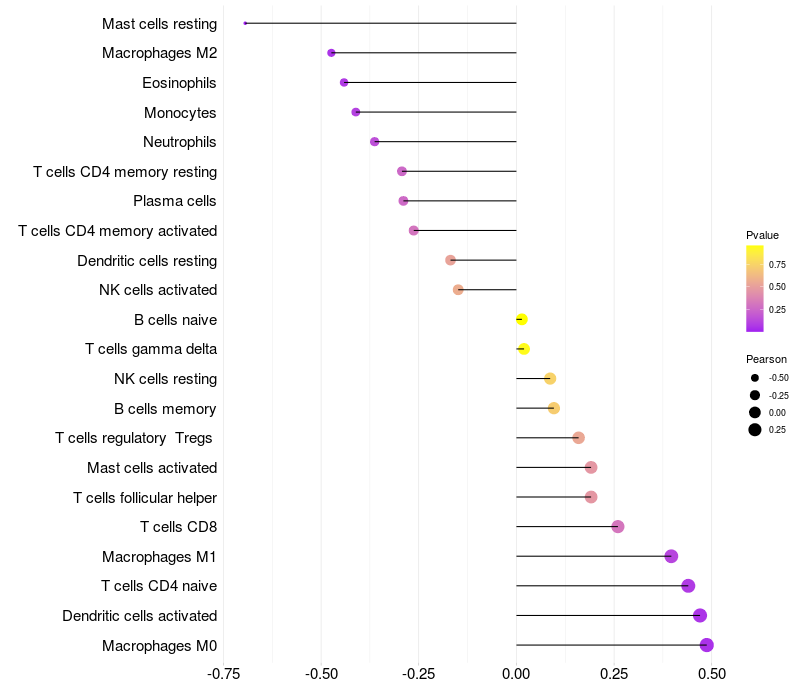 Relationship between gene expression and immune infiltrating cell level