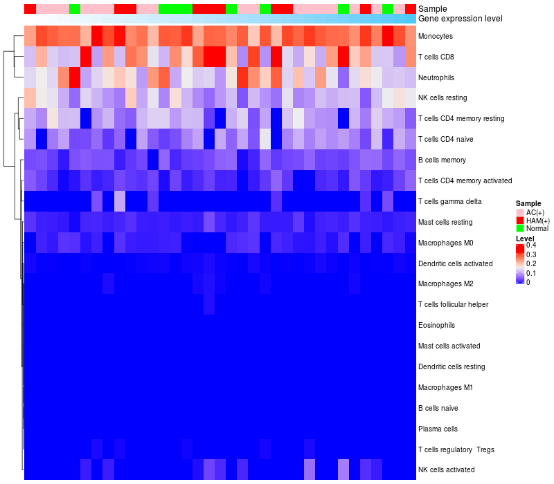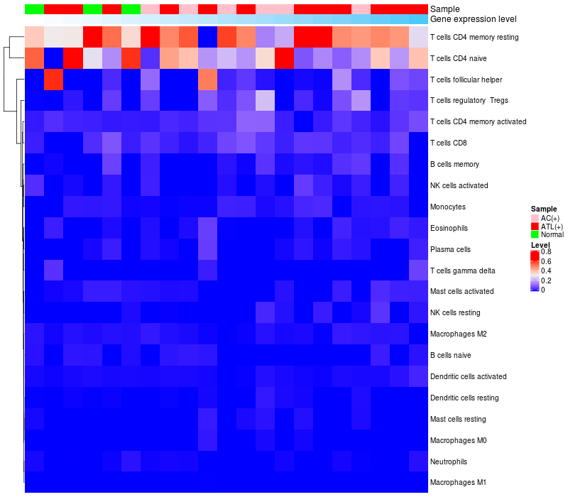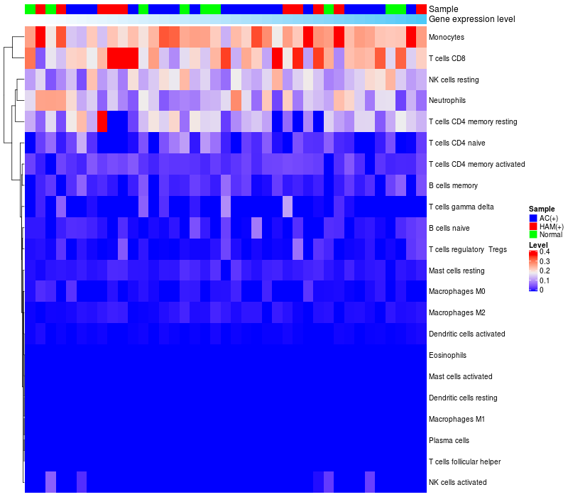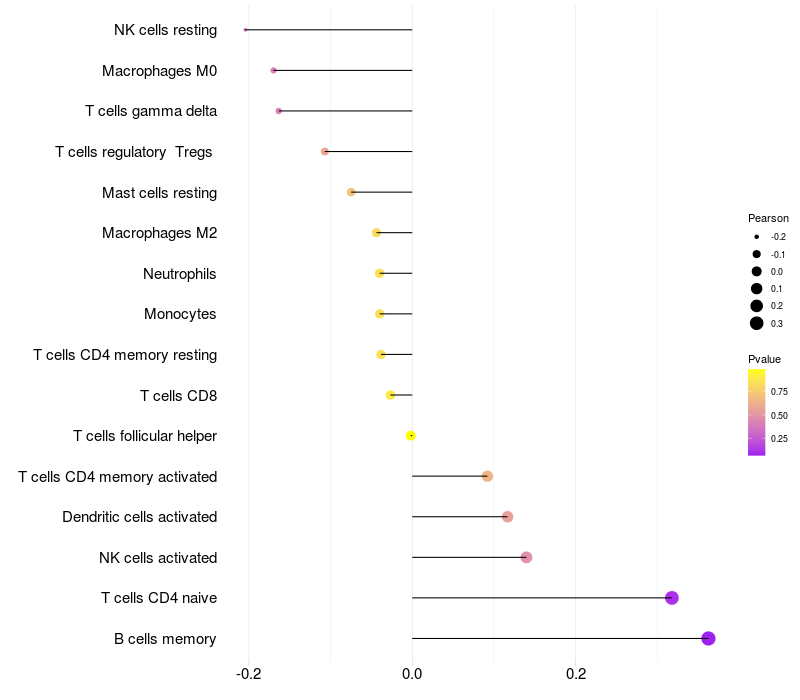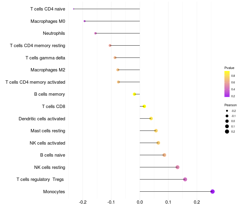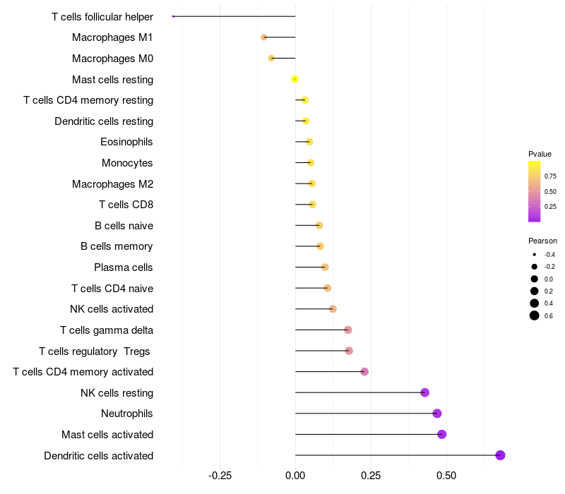 Lollipop of GFRA1 expression and immune infiltrating cell level correlation result in HTLV1+ samples