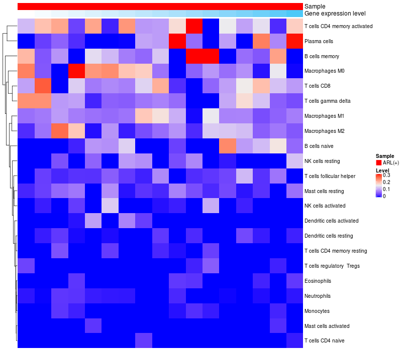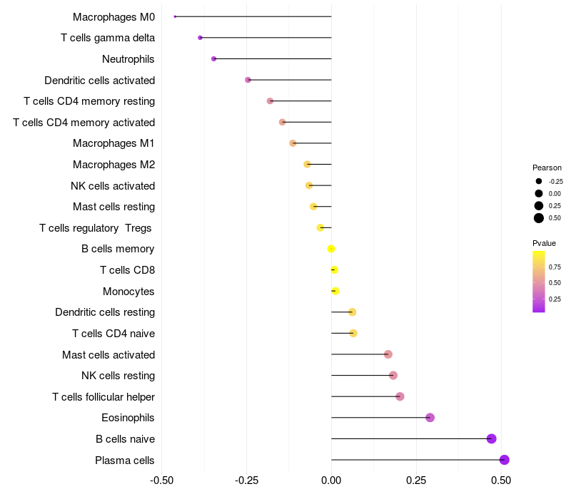Relationship between gene expression and immune infiltrating cell level