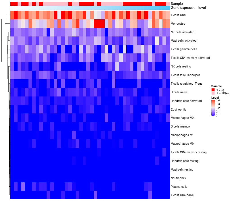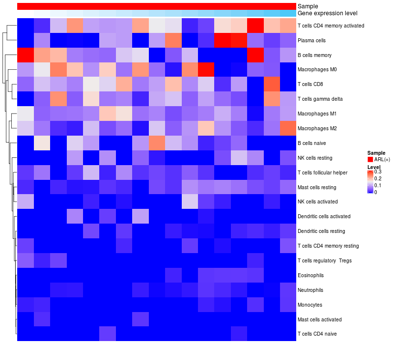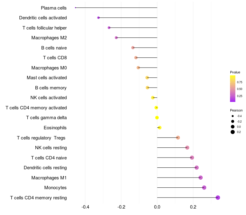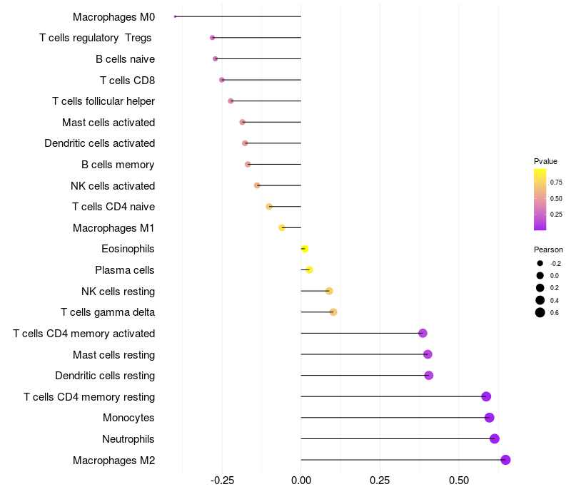 Relationship between gene expression and immune infiltrating cell level