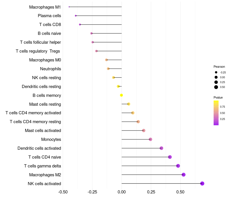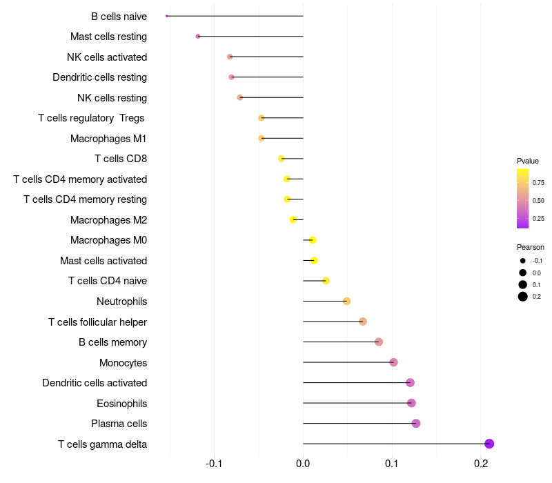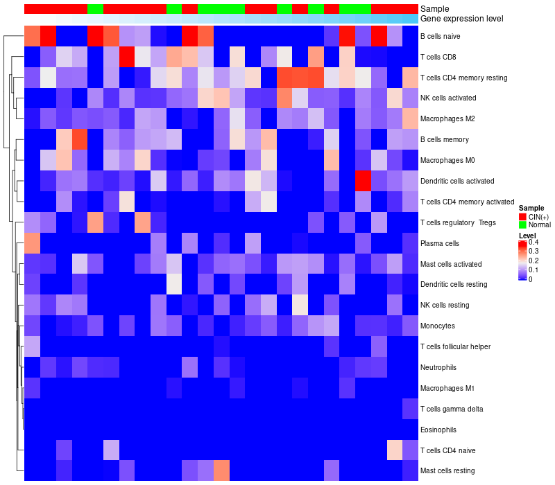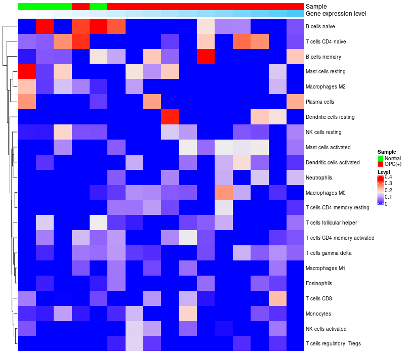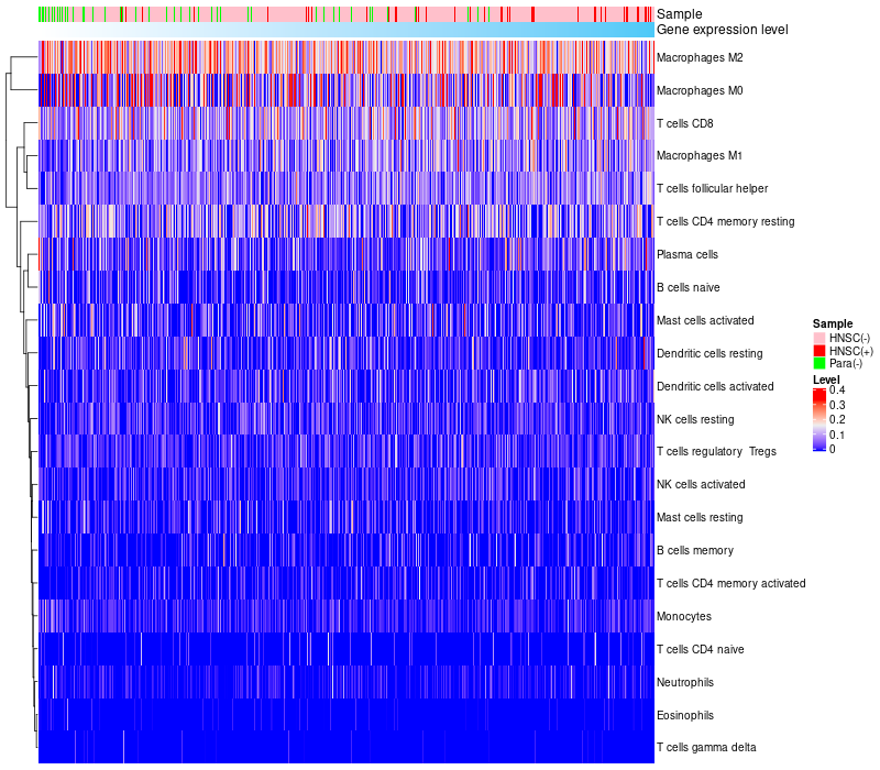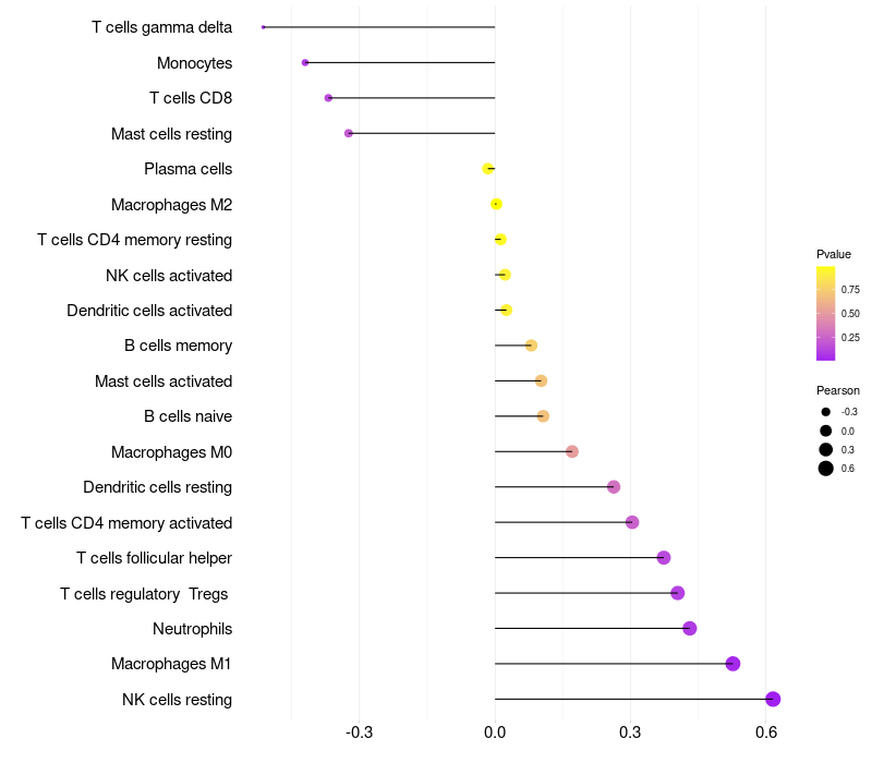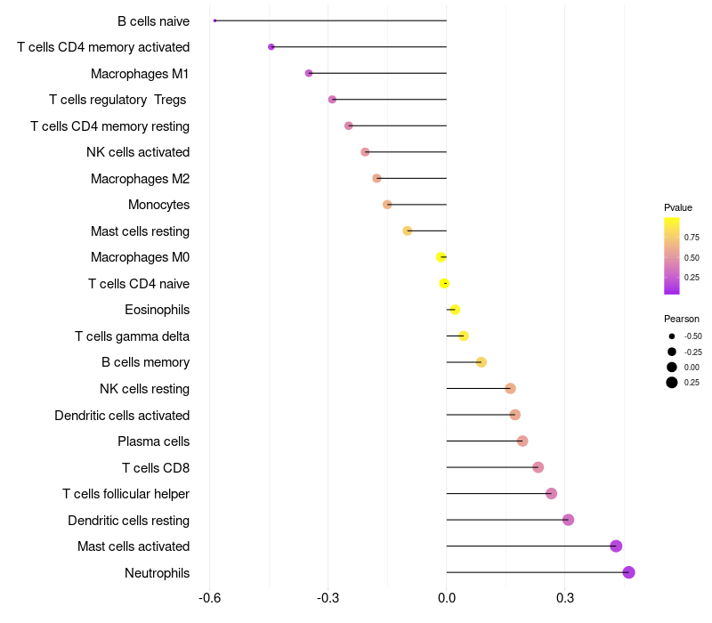 Relationship between gene expression and immune infiltrating cell level