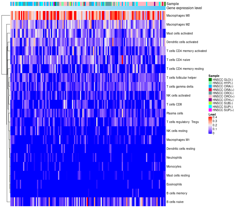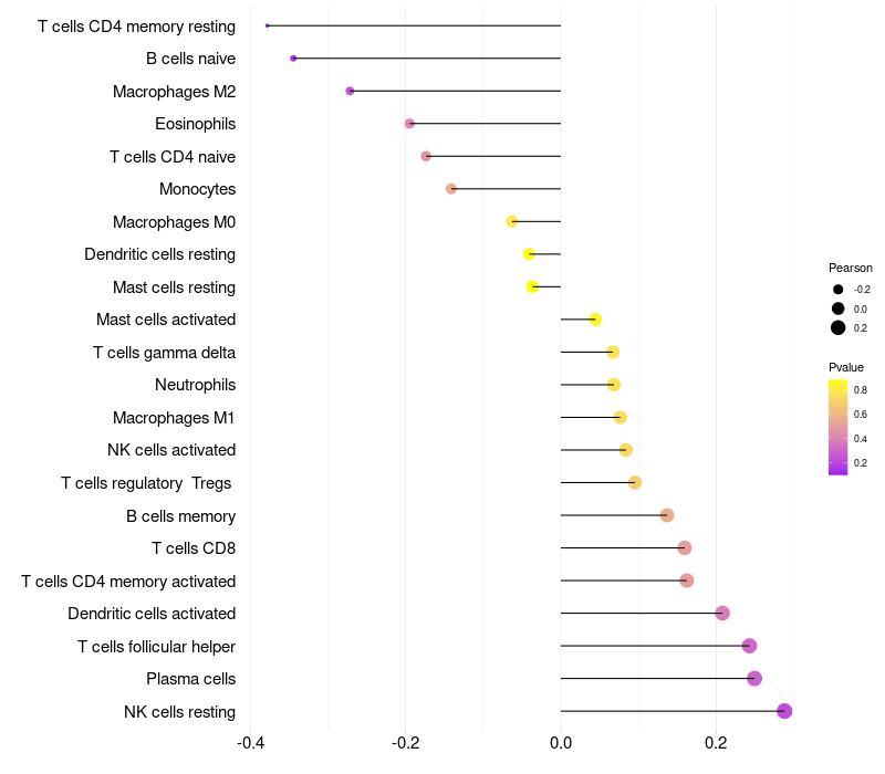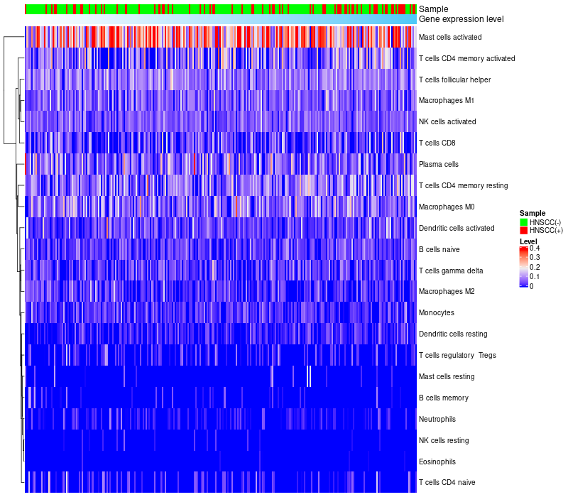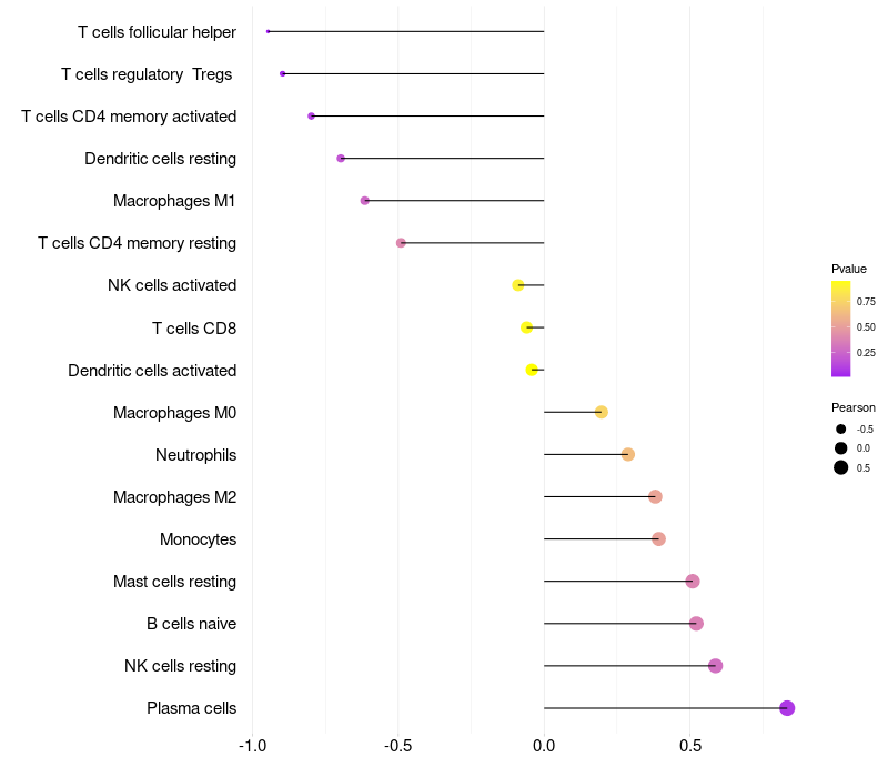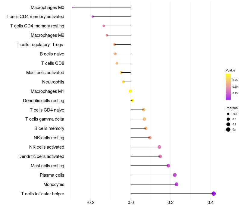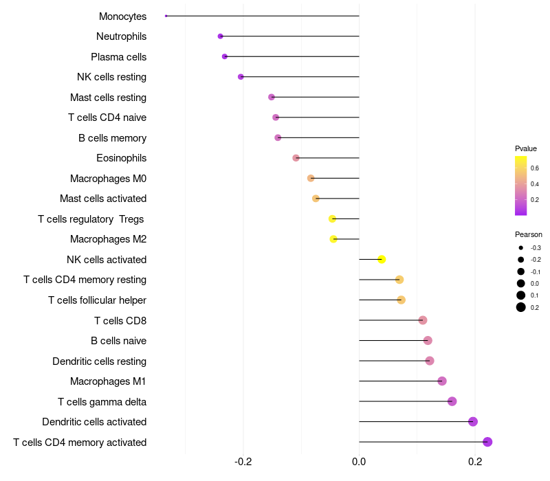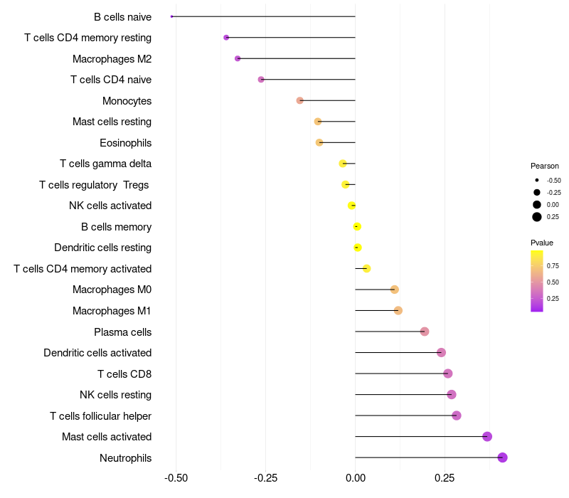 Relationship between gene expression and immune infiltrating cell level