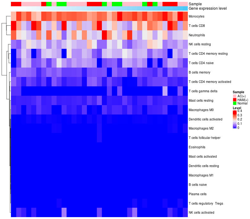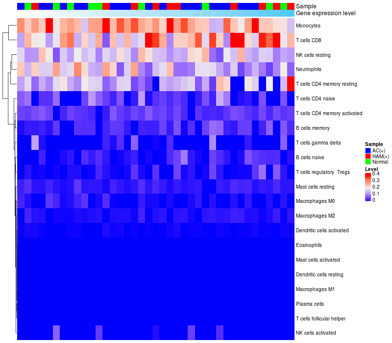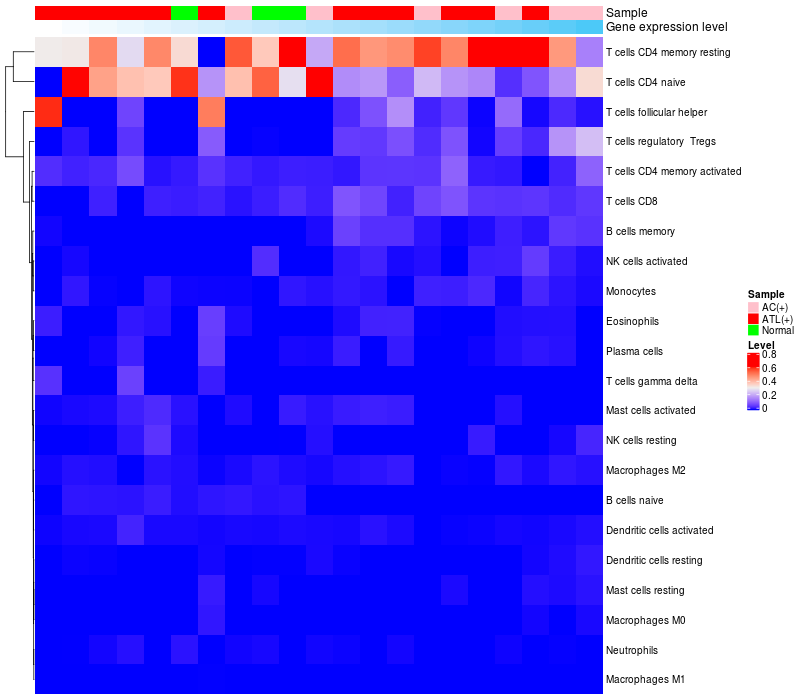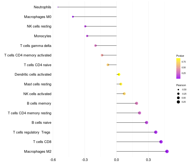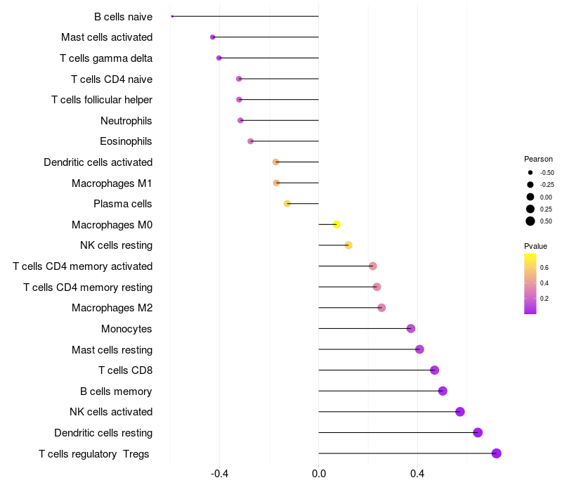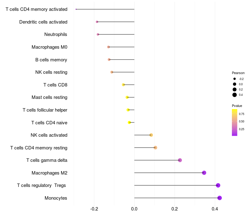 Lollipop of GIT1 expression and immune infiltrating cell level correlation result in HTLV1+ samples
