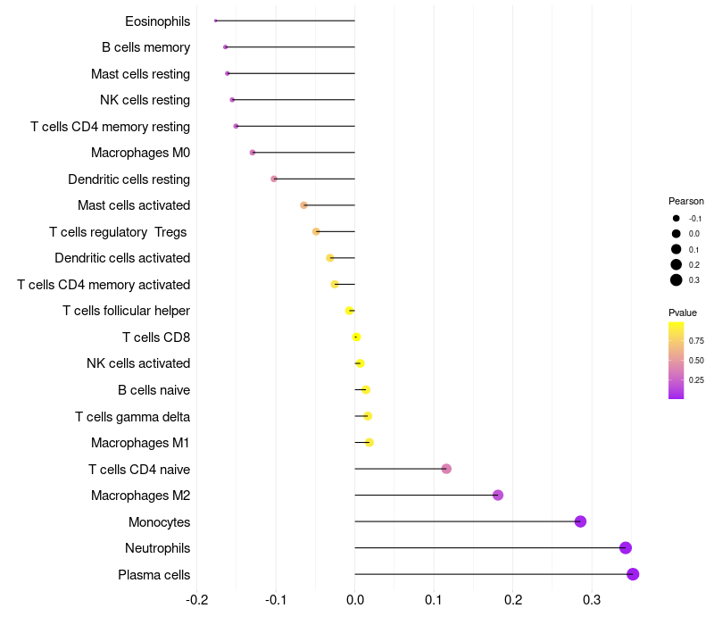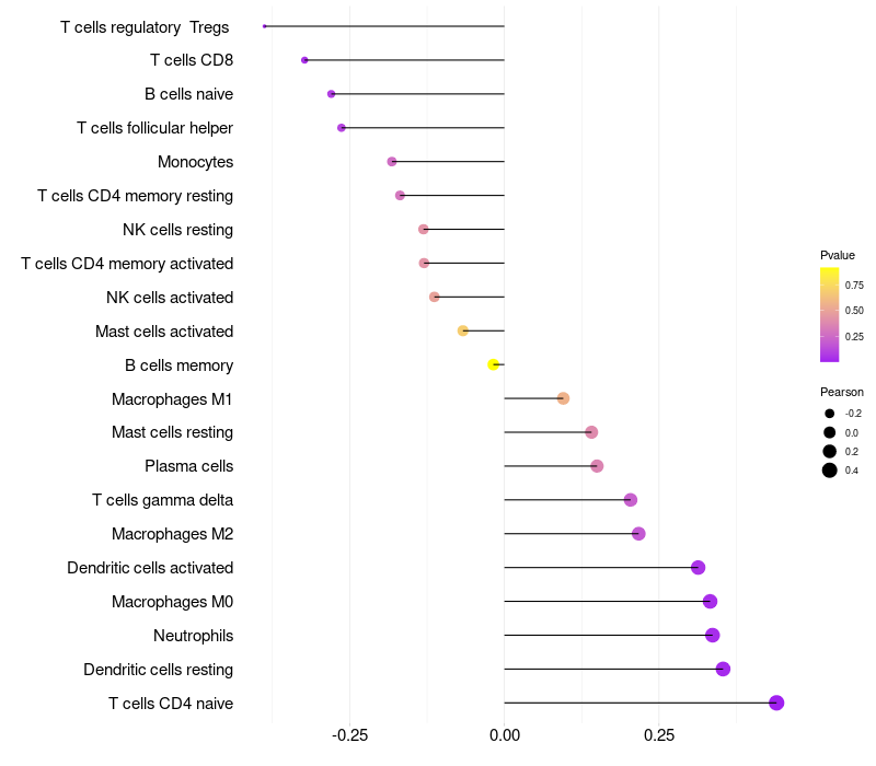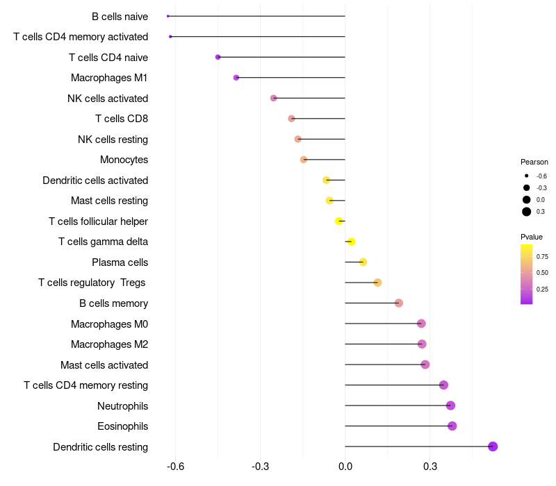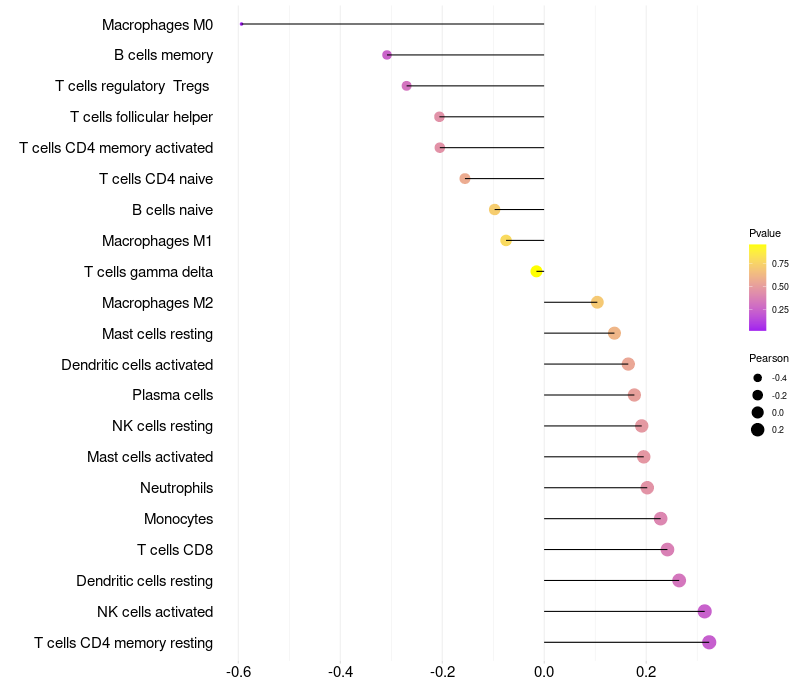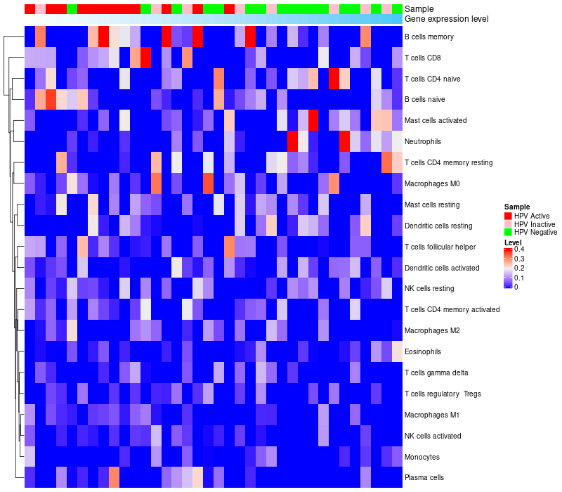 HeatMap of cell type fractions in all samples Lollipop of GJB6 expression and immune infiltrating cell level correlation result in HPV+ samples