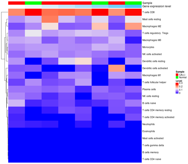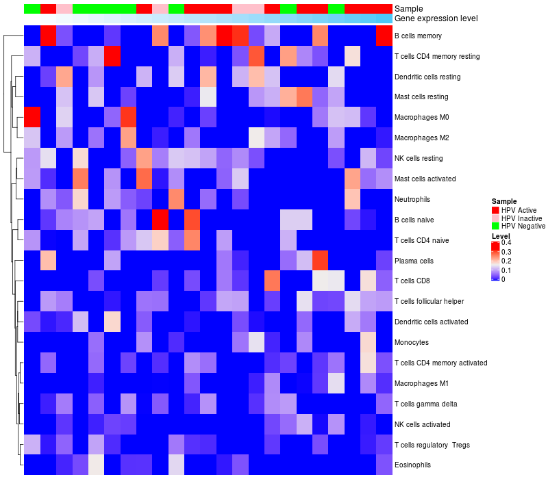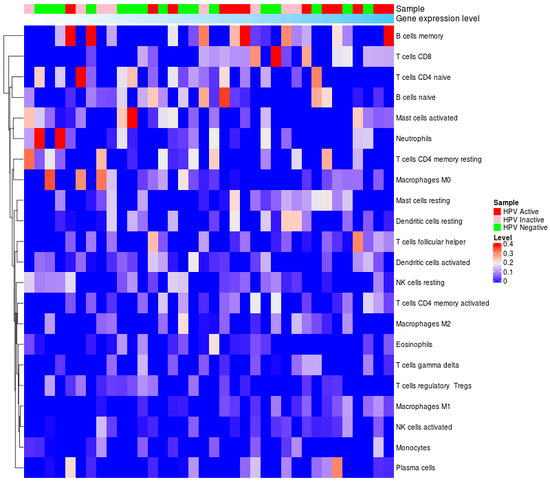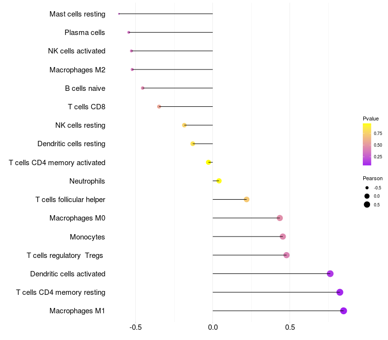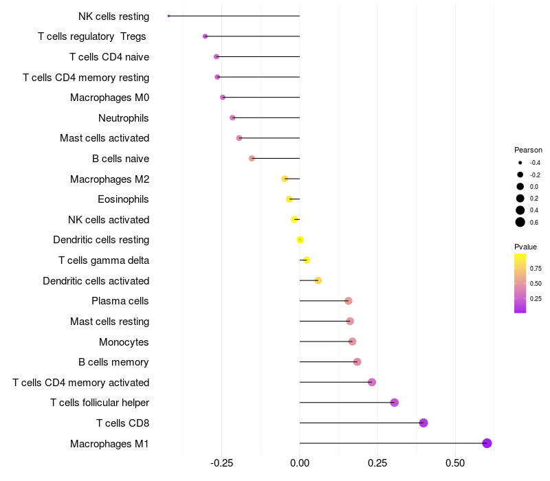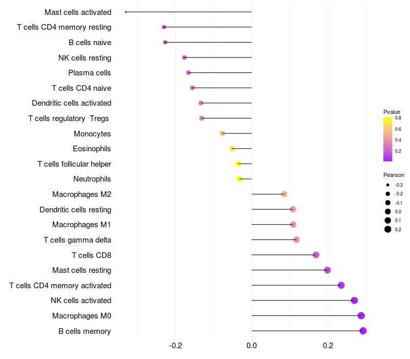 Lollipop of GJD3 expression and immune infiltrating cell level correlation result in HPV+ samples