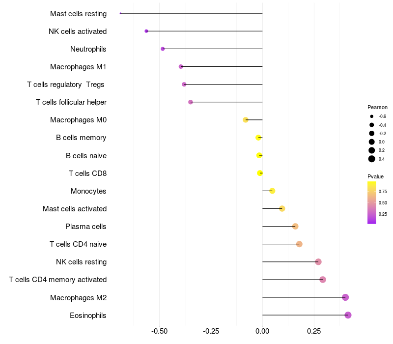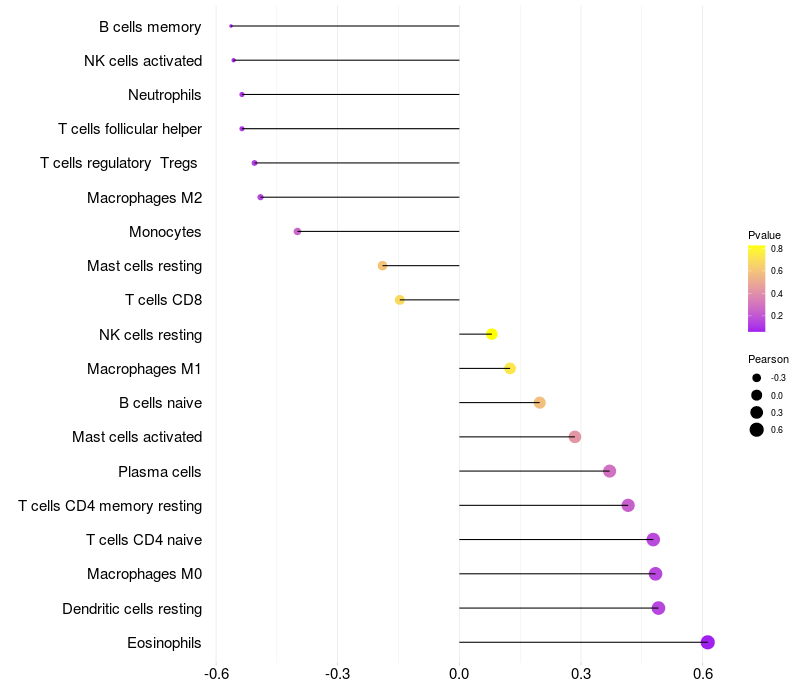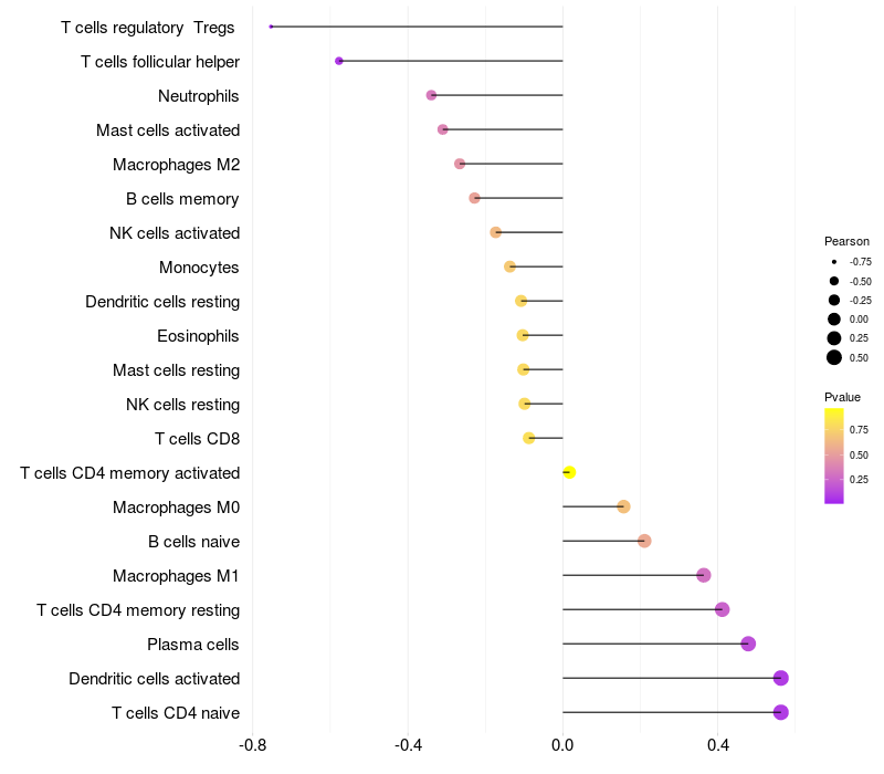 Lollipop of GLI2 expression and immune infiltrating cell level correlation result in HBV+ Liver cirrhosis samples