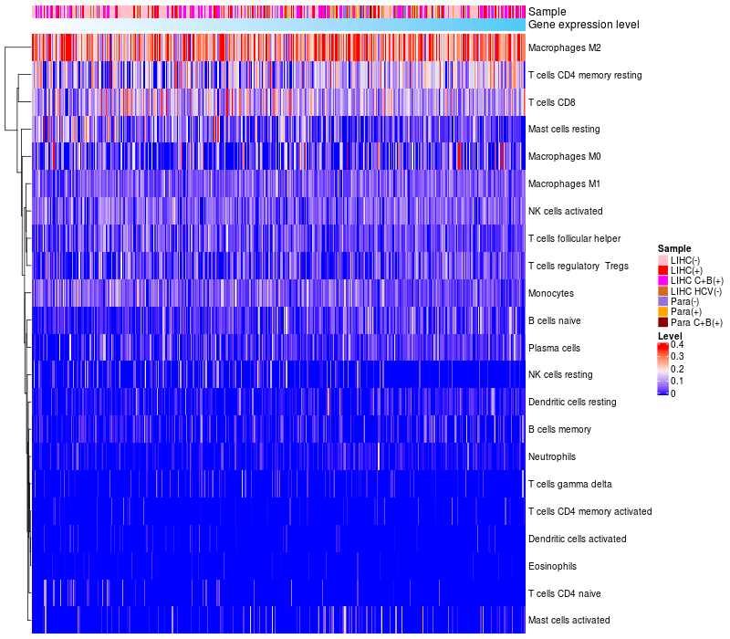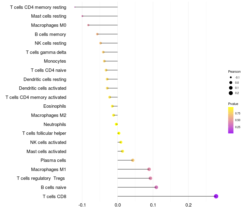 Relationship between gene expression and immune infiltrating cell level