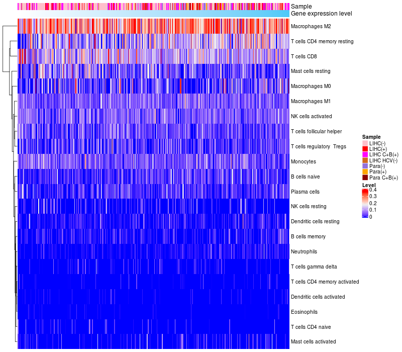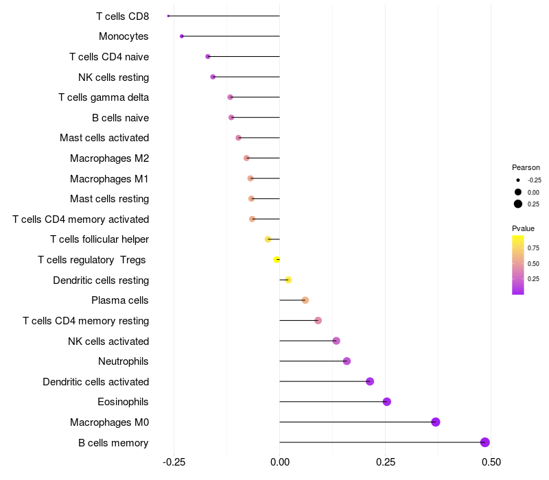 Relationship between gene expression and immune infiltrating cell level