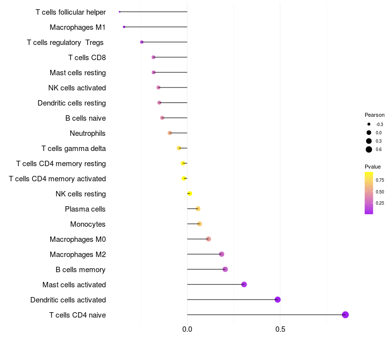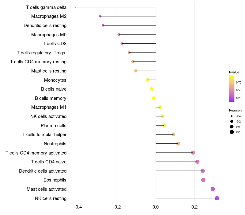 HeatMap of cell type fractions in all samples Lollipop of GLRA2 expression and immune infiltrating cell level correlation result in HPV+ samples
