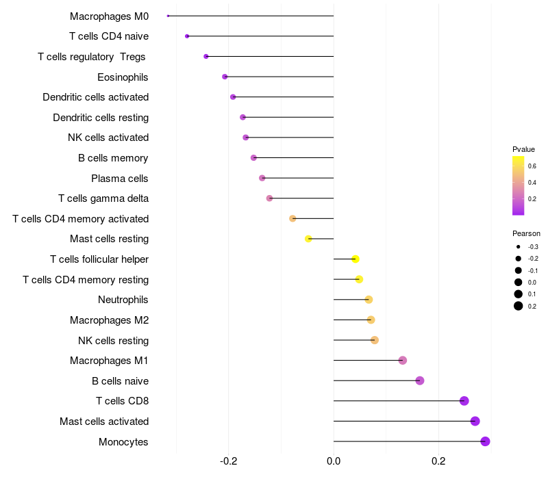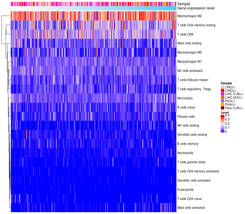 Relationship between gene expression and immune infiltrating cell level