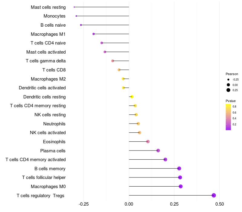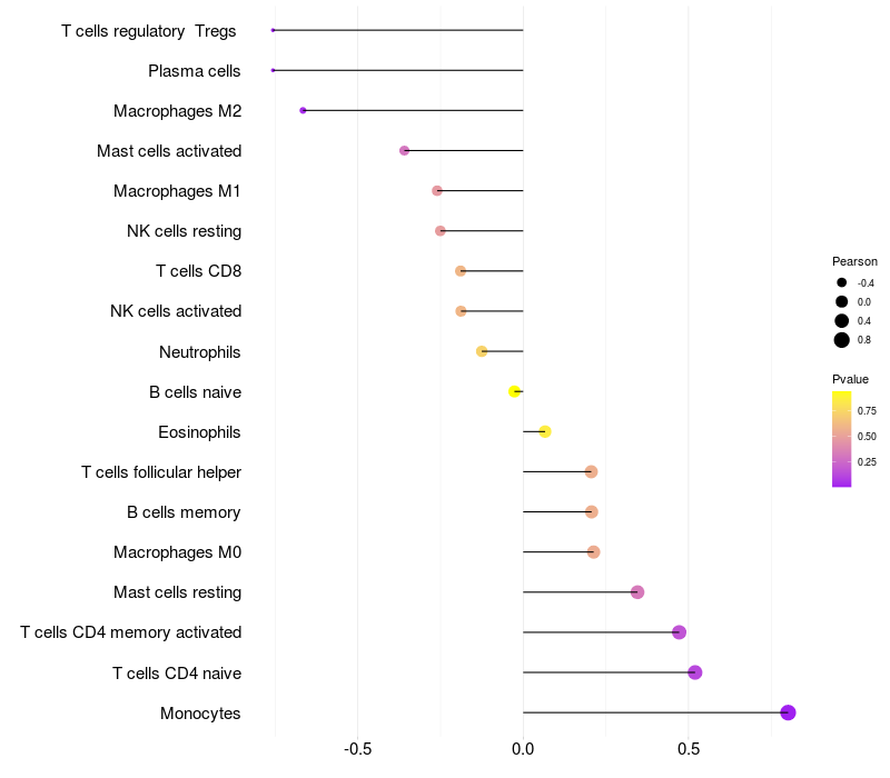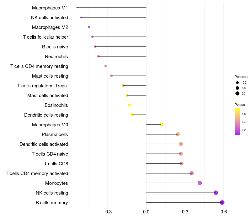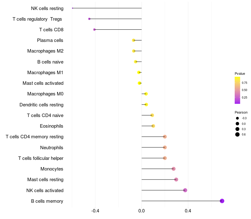 Lollipop of GLTP expression and immune infiltrating cell level correlation result in HBV+ Liver cirrhosis samples