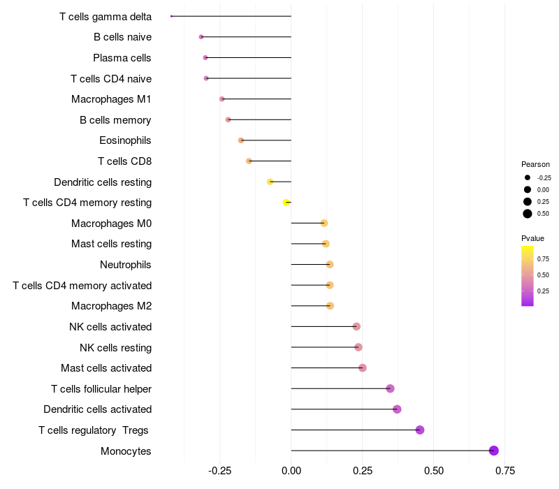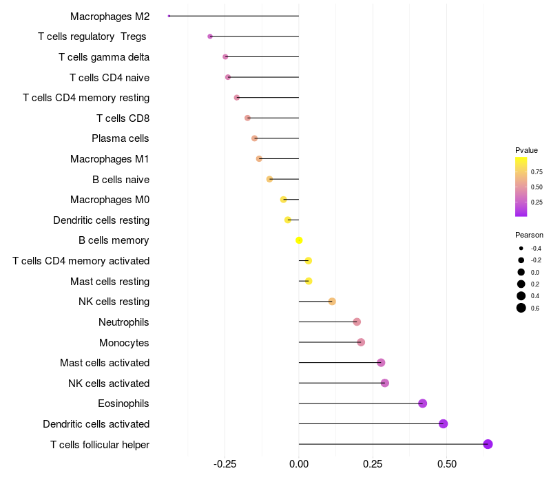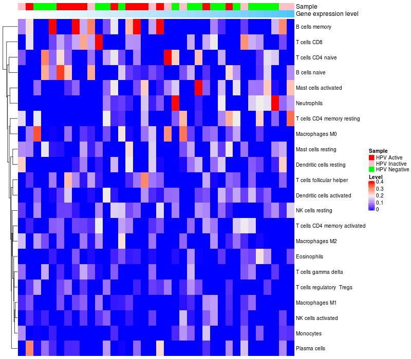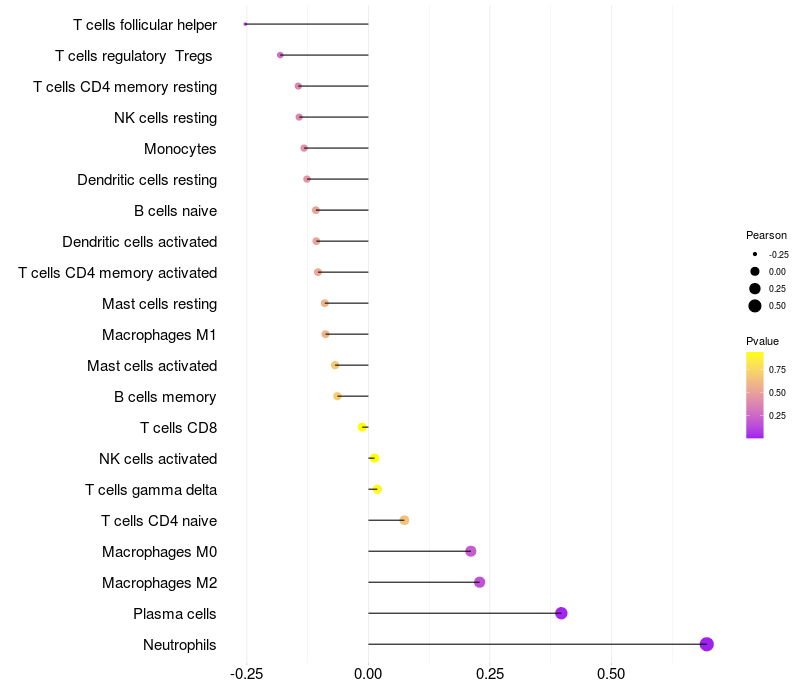 HeatMap of cell type fractions in all samples Lollipop of GLTPD2 expression and immune infiltrating cell level correlation result in HPV+ samples