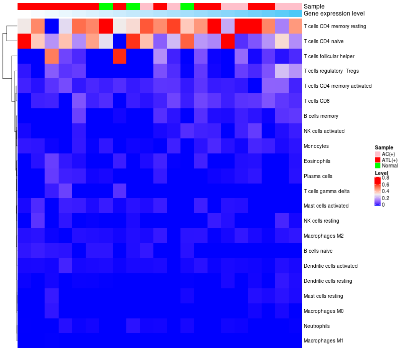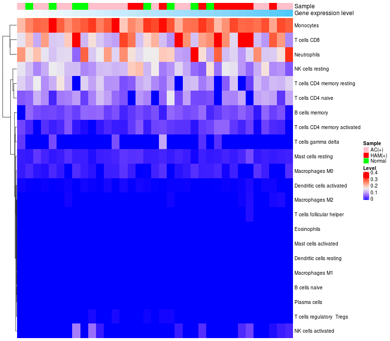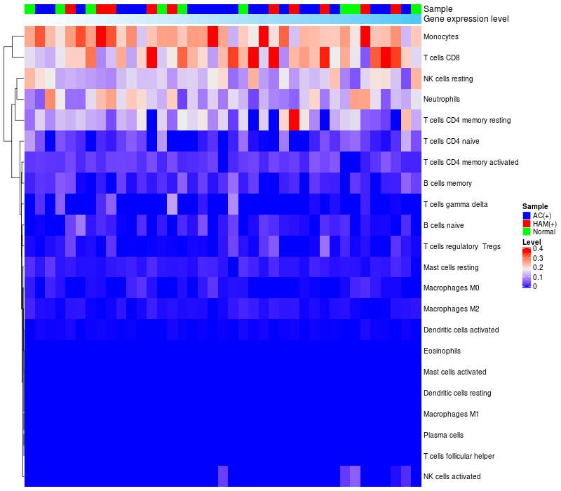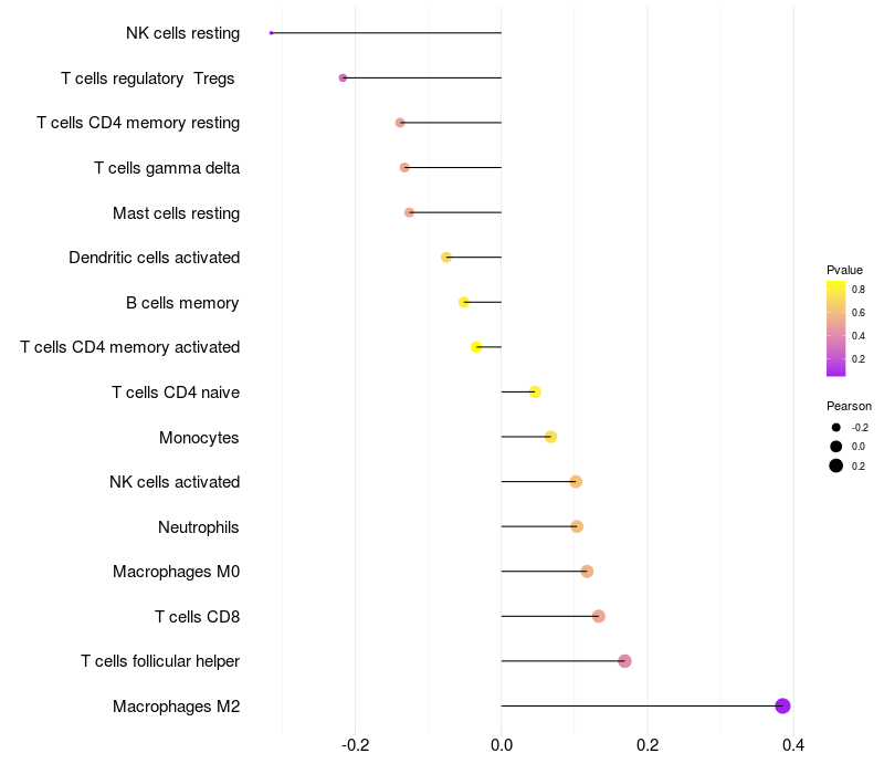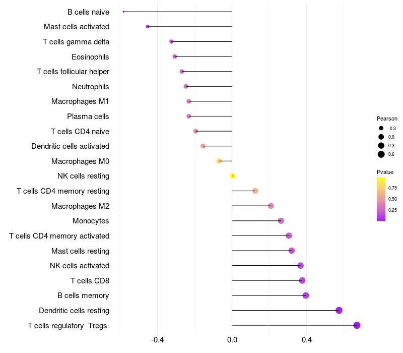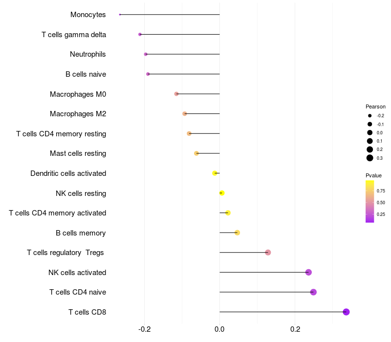 Lollipop of GOLGA1 expression and immune infiltrating cell level correlation result in HTLV1+ samples