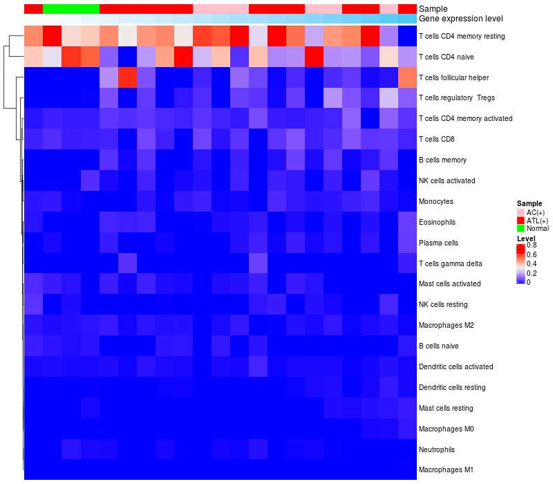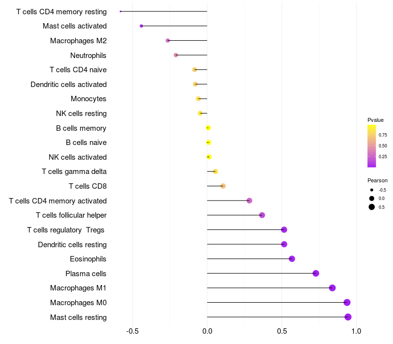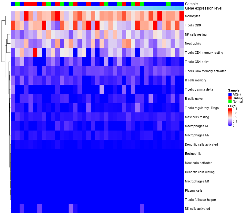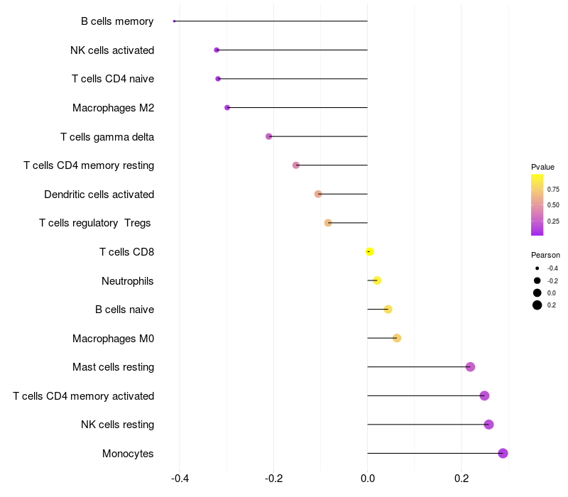 Relationship between gene expression and immune infiltrating cell level