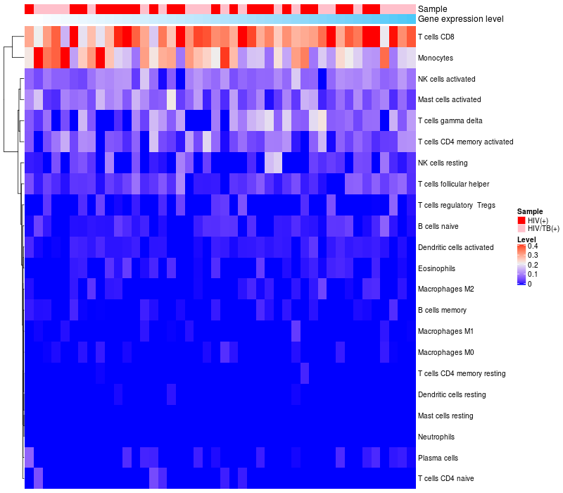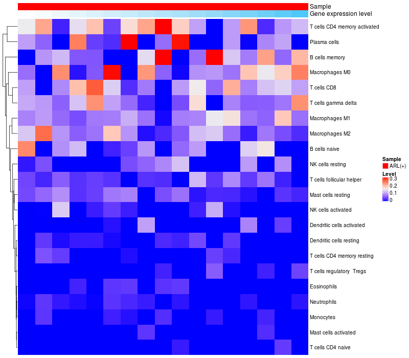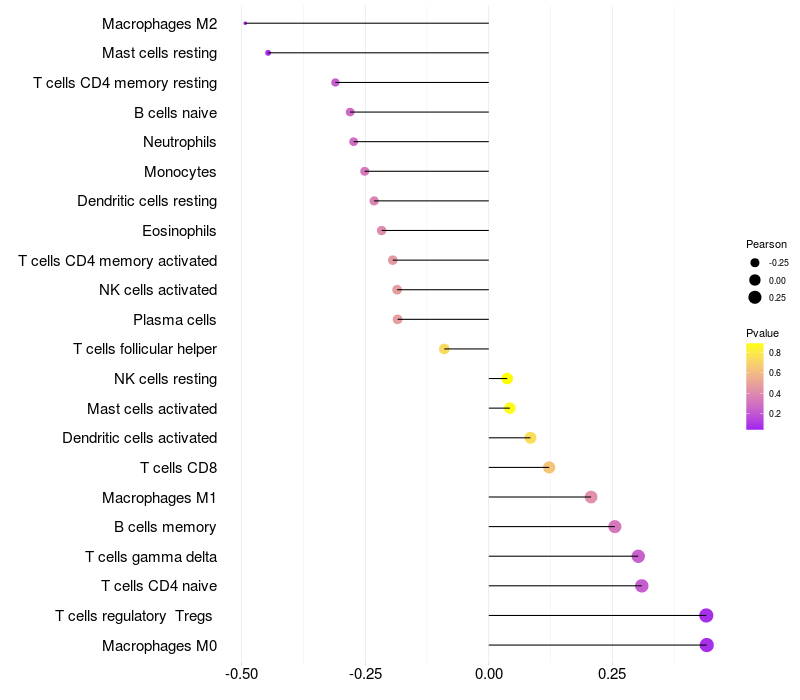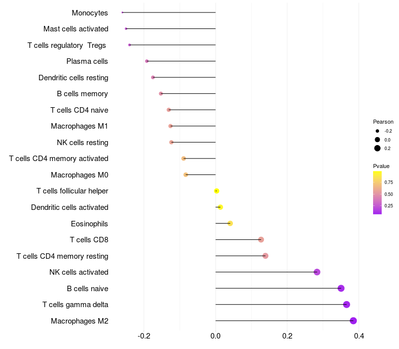Relationship between gene expression and immune infiltrating cell level