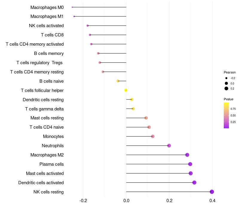 HeatMap of cell type fractions in all samples Lollipop of GOT2 expression and immune infiltrating cell level correlation result in HPV+ samples
