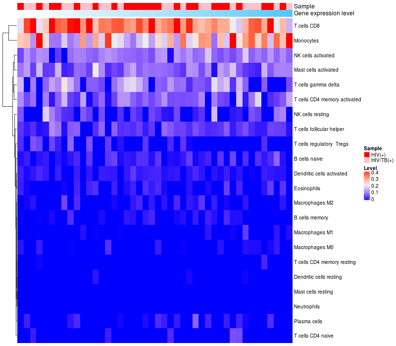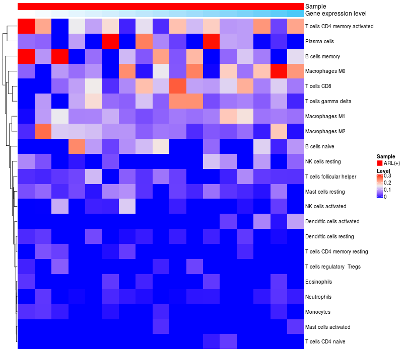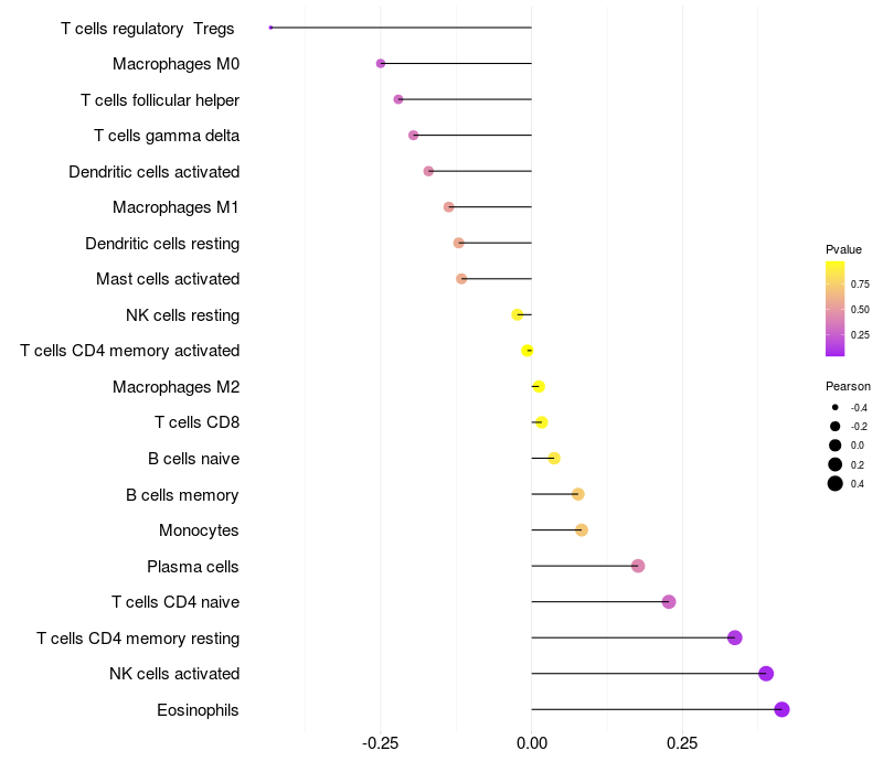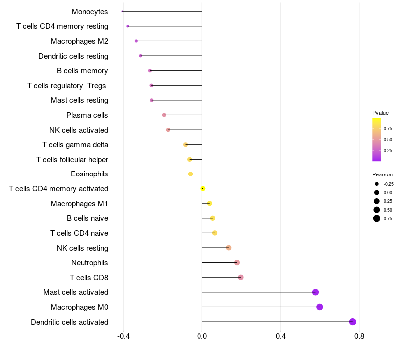 Relationship between gene expression and immune infiltrating cell level