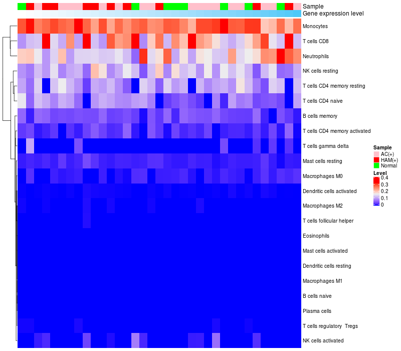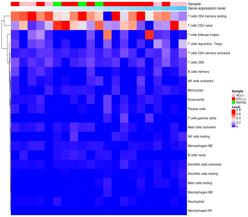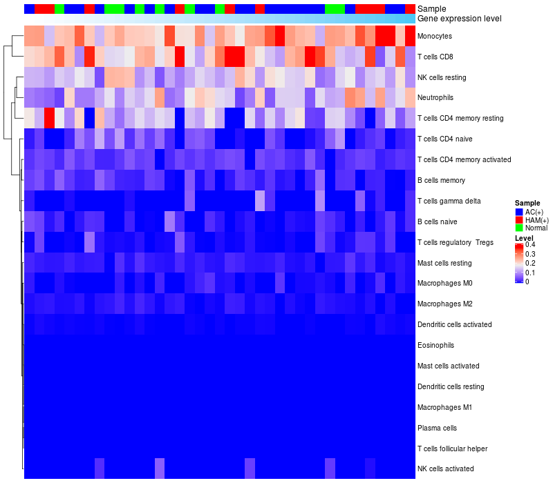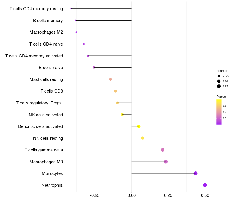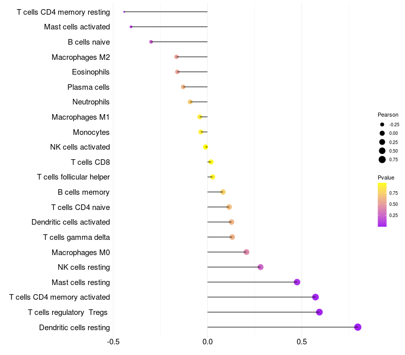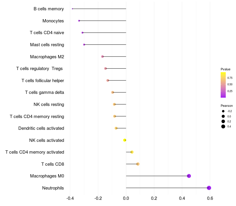 Lollipop of GPR141 expression and immune infiltrating cell level correlation result in HTLV1+ samples