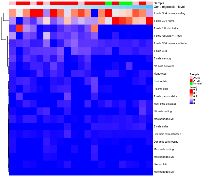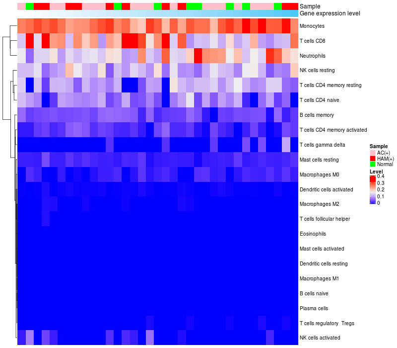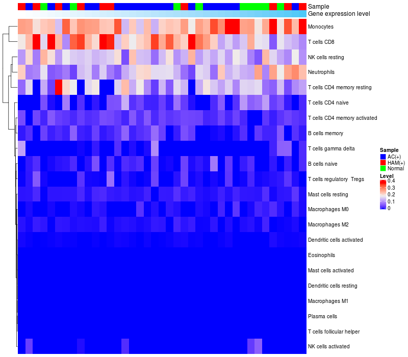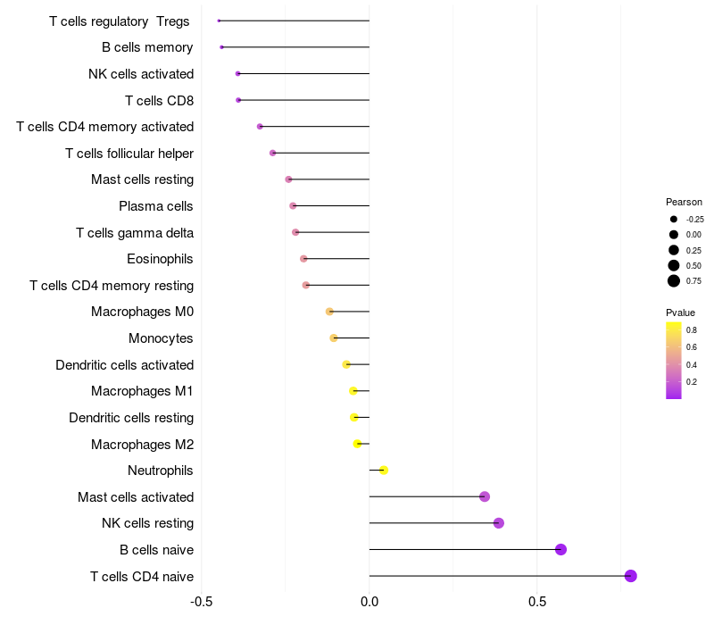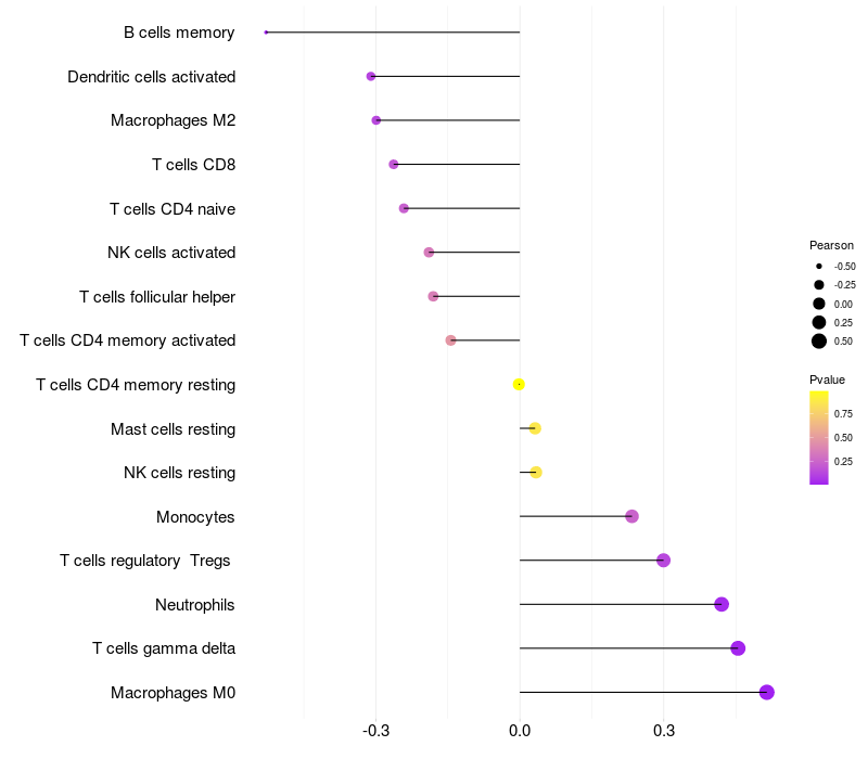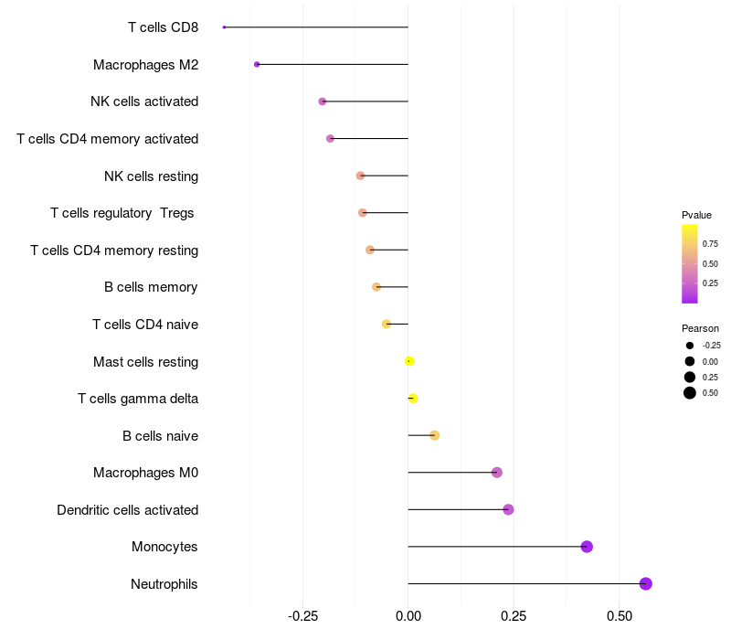 Relationship between gene expression and immune infiltrating cell level
