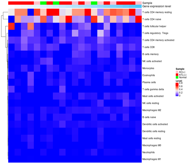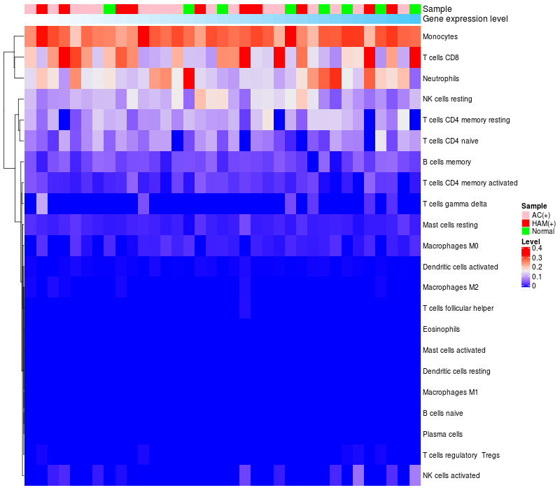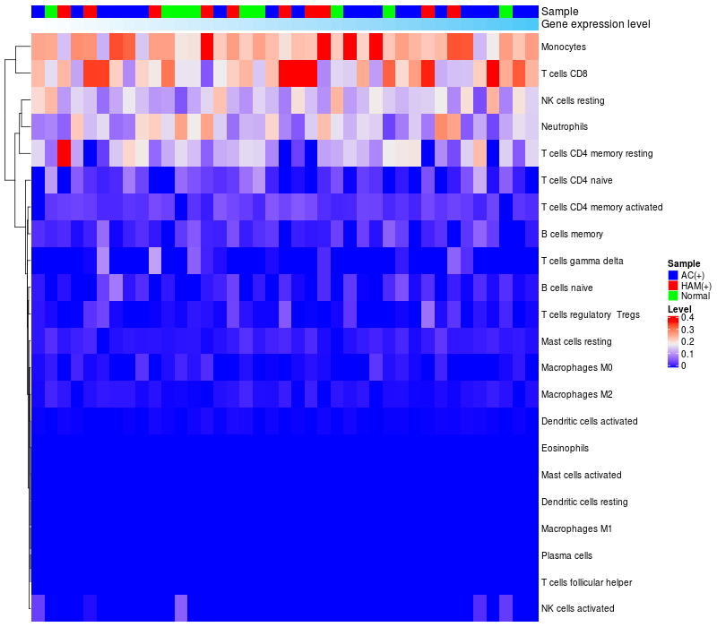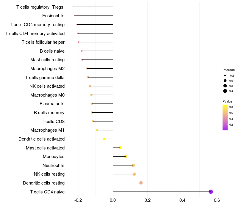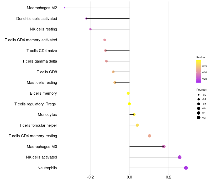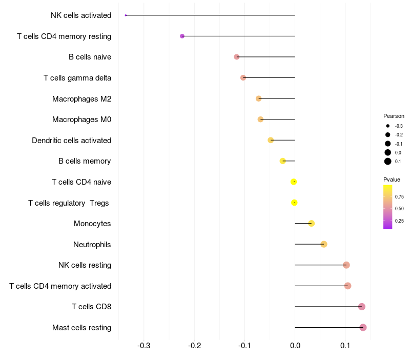 Lollipop of GPR173 expression and immune infiltrating cell level correlation result in HTLV1+ samples
